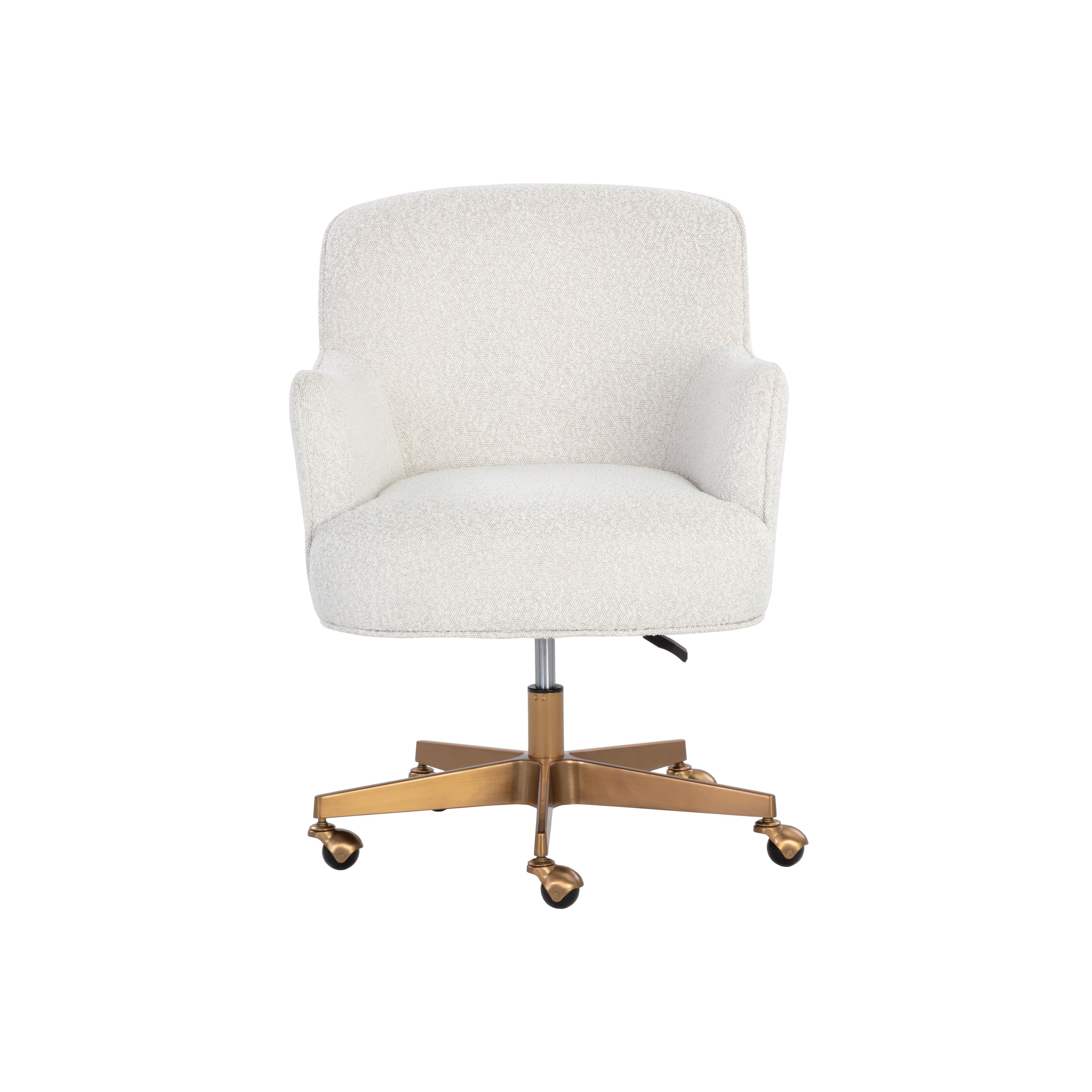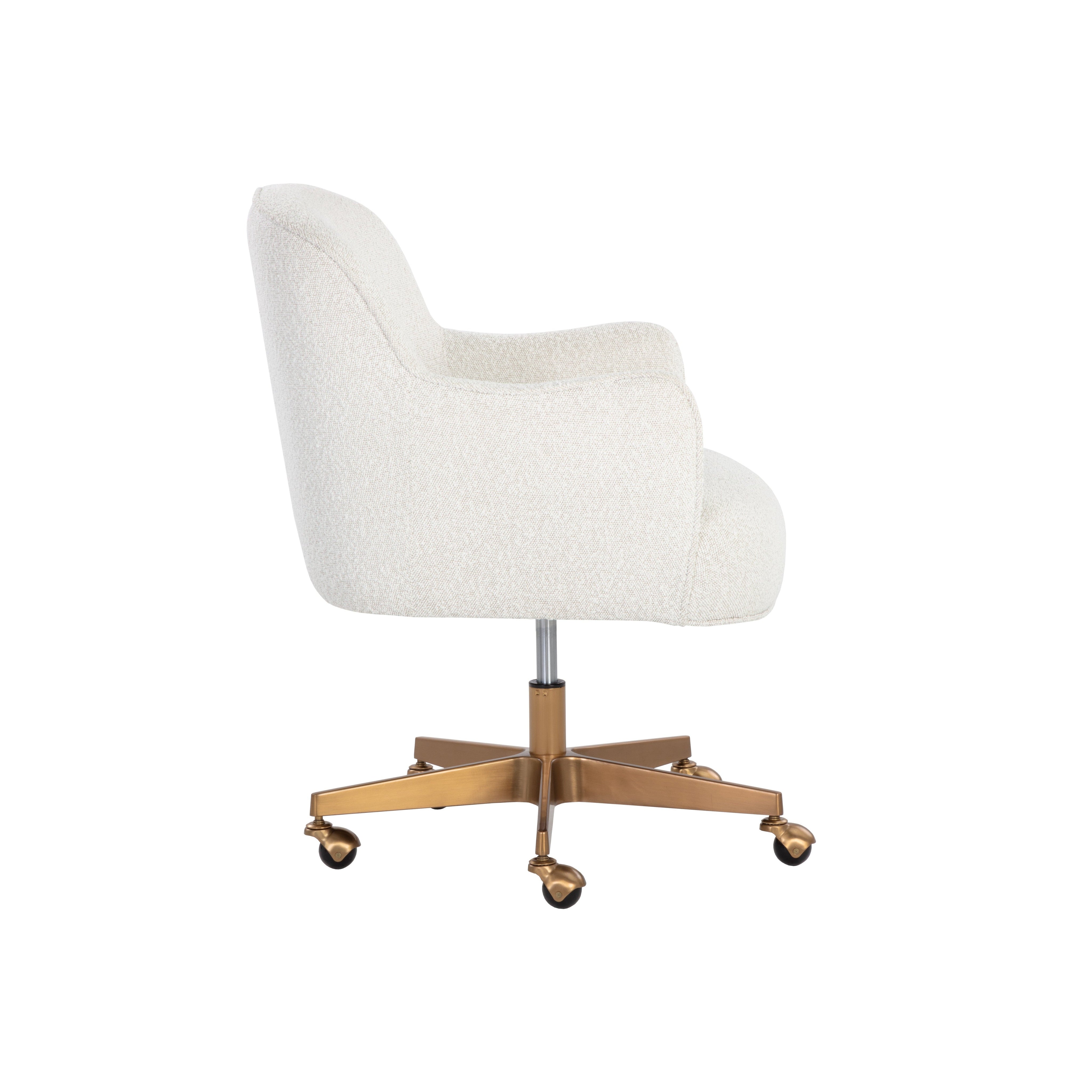 Design a workspace that projects chic comfort with this modern office chair. Features a curved seat in copenhagen white boucle fabric with a gold steel base.