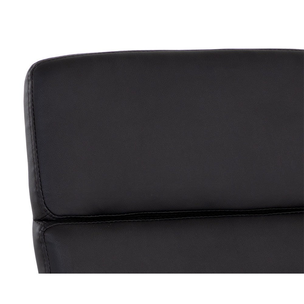 Create a stylish and functional workspace with this stunning modern office chair. Stocked in onyx faux leather and features generously padded seating for optimal comfort. Completed with castors for added mobility, and a gold stainless steel frame. Handle With Care: This design has been crafted with faux leather. Faux leather is manufactured to reflect the natural characteristics of leather; as such, colour variations, markings wrinkles, grooves, and light scratches are appreciated characteristics. No two pieces will be alike. Visit our Product Care page for more information on how to ensure the lasting beauty of this piece.