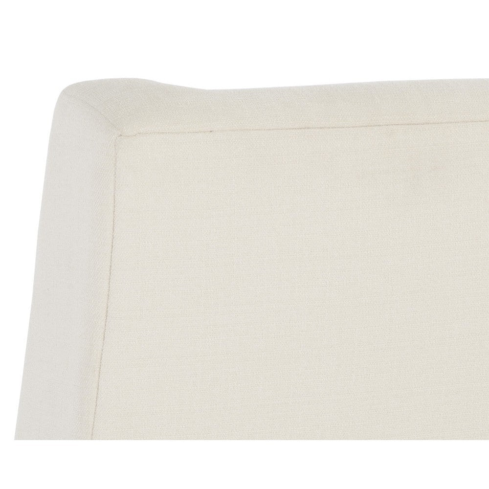 Add a hint of modern glamour to any workspace with this grand office chair. Stocked in zenith alabaster performance fabric. Completed with a matte gold stainless steel base with added castors for mobility. Performance fabric is moisture repellent, durable and easy to clean.