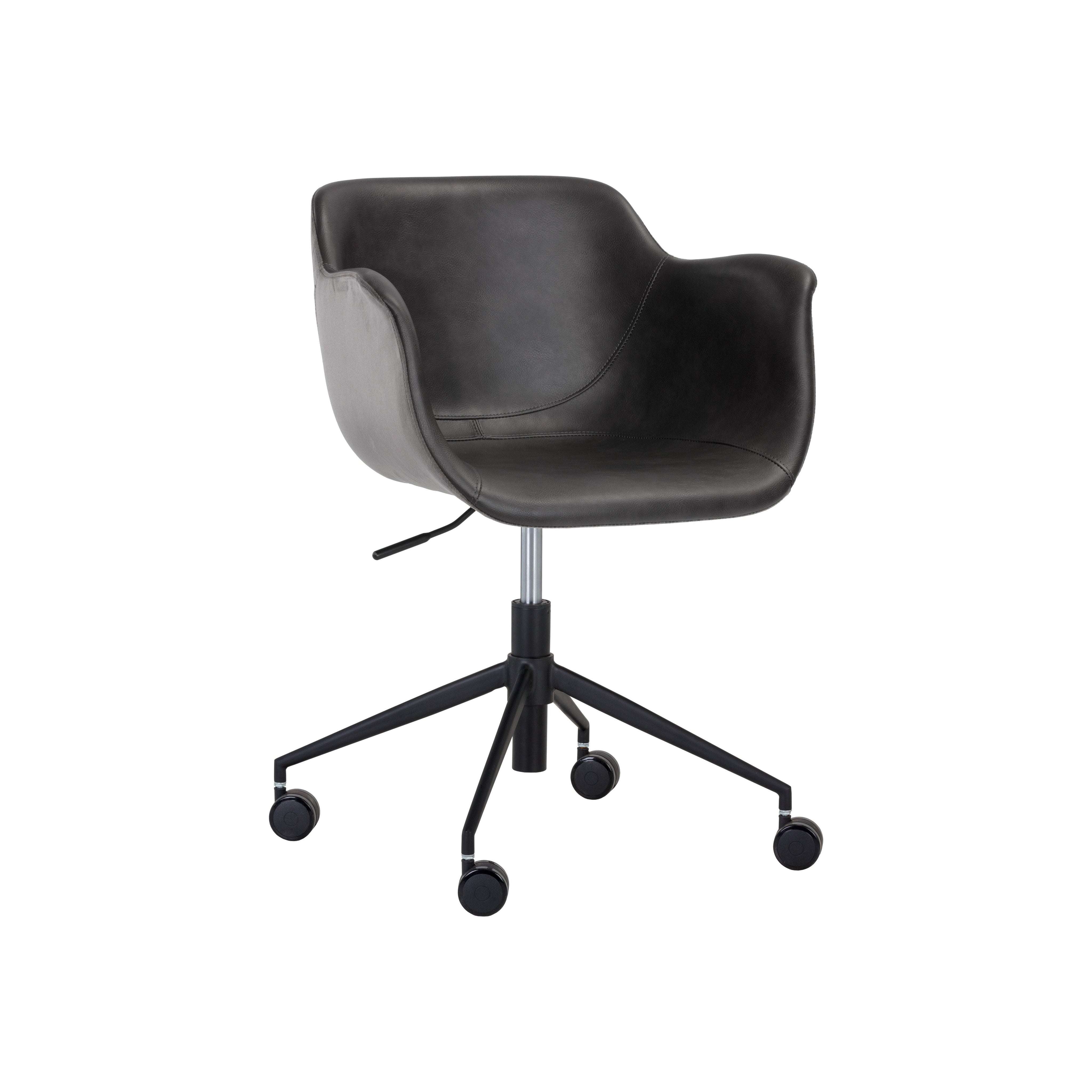 This comfortable office chair provides a balanced mixture of masculine, modern and urban design elements. Stocked in contrasting town grey faux leather and roman grey fabric with black powder-coated iron legs. Castors allow for easy mobility. Handle With Care: This design has been crafted with faux leather. Faux leather is manufactured to reflect the natural characteristics of leather; as such, colour variations, markings, wrinkles, grooves, and light scratches are appreciated characteristics. No two pieces will be alike. Visit our Product Care page for more information on how to ensure the lasting beauty of this piece.