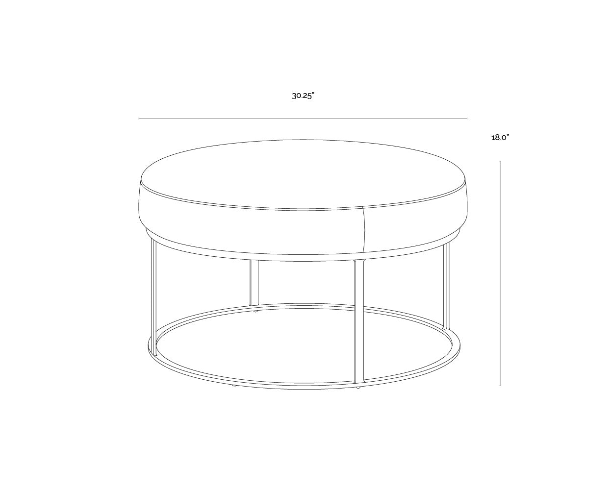 This round ottoman designed with modern elements will be the perfect additional seat or footrest in living and lounge spaces. Stocked in moto stucco fabric, and overcast grey or tobacco tan faux leather with a black iron frame. Handle With Care: This design has been crafted with faux leather. Faux leather is manufactured to reflect the natural characteristics of leather; as such, colour variations, markings wrinkles, grooves, and light scratches are appreciated characteristics. No two pieces will be alike. Visit our Product Care page for more information on how to ensure the lasting beauty of this piece.