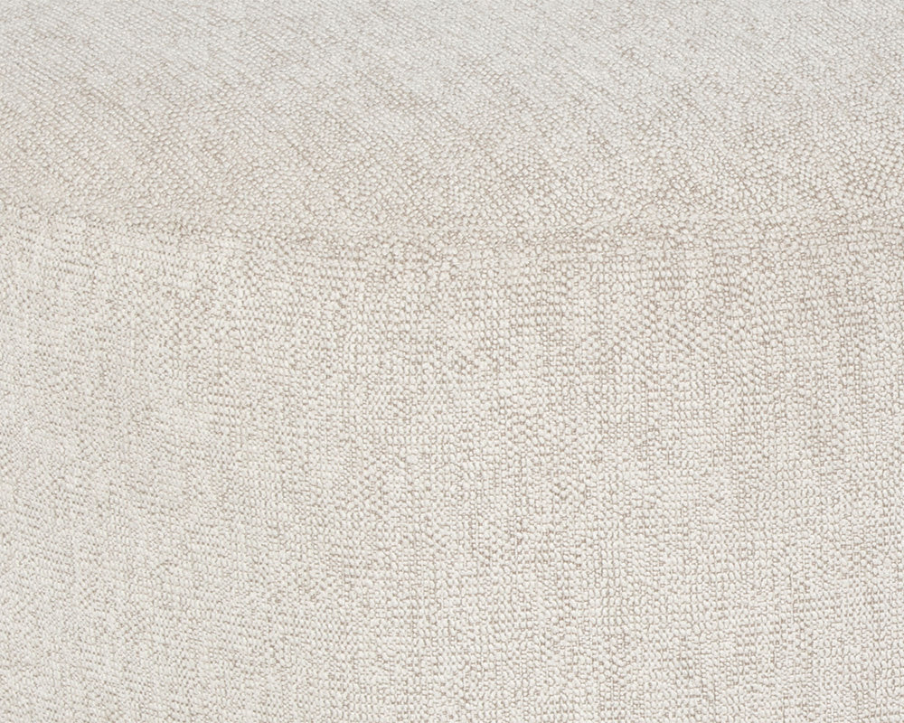 Boasting a design that is all about that curve appeal, this marvelous ottoman will stylishly add shape to any space. Stocked in dove cream fabric and completed with a wooden base. Coordinating swivel armless chair and sofa also available.
