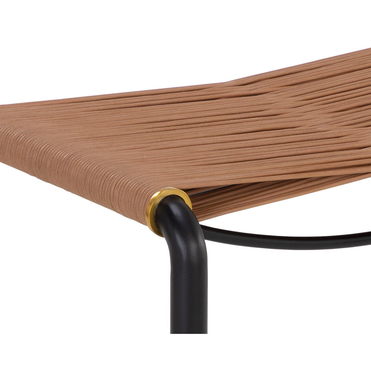 An intriguing stool that is designed with attention to detail. Features a tan leather cord seat with a black steel frame. Powder coated gold accents complete the look. A stunning addition to foyer, living and bedroom spaces. Made in India. With refined craftsmanship, this design was brought to life by skilled local artisans. By nature, these materials develop unique imperfections such as fissures, markings and colour variations for a truly one-of-a-kind piece.