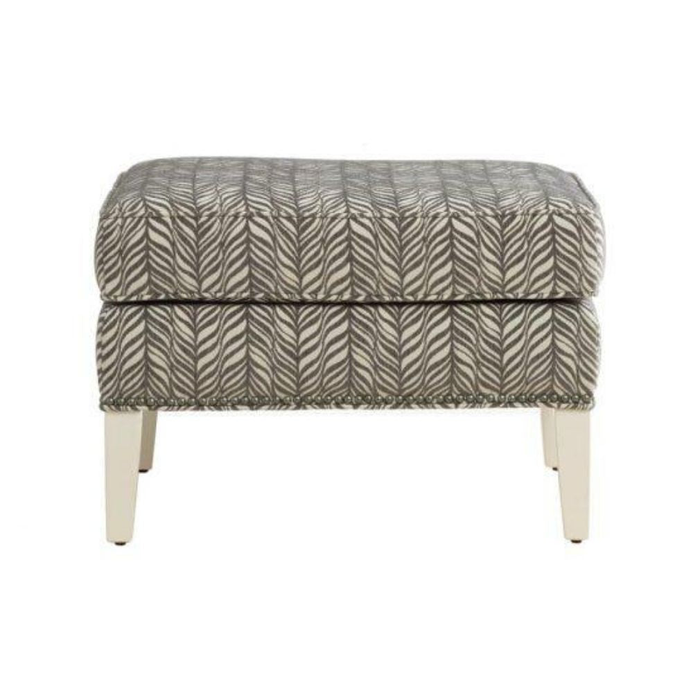 With its sleek lines, unpretentious legs and classy piping, this handsome ottoman could stand comfortably just about anywhere in your home. Once you decide the perfect spot, you can choose the fabric, wood finish and metal nail head trim.