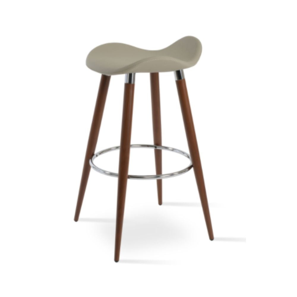 Falcon Ana Stools is a unique counter and bar stool with a comfortable plywood upholstered seat and backrest on solid chromed steel ana base. Each leg is tipped with a plastic glide embedded into the metal wire. The stool is suitable for both residential and commercial use.