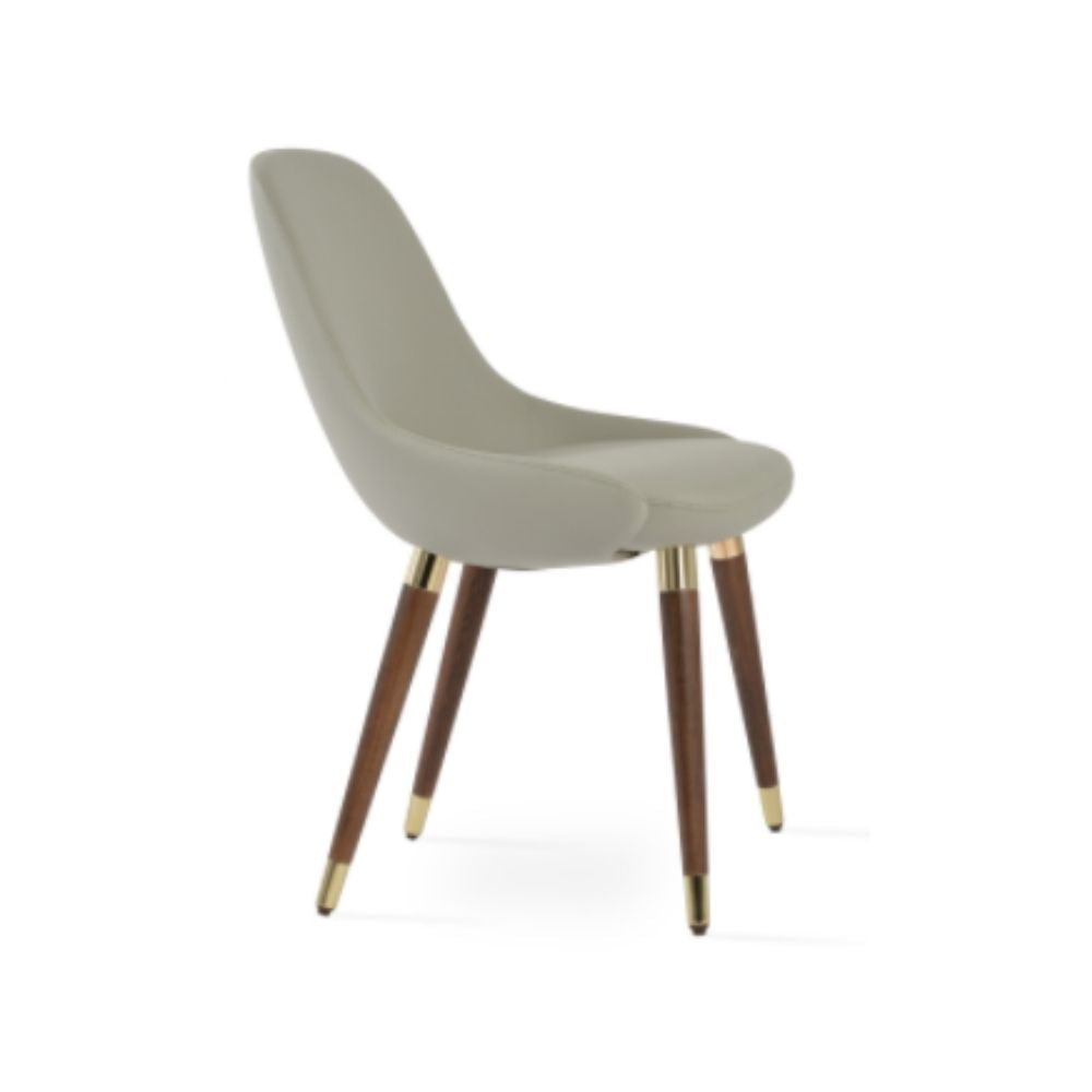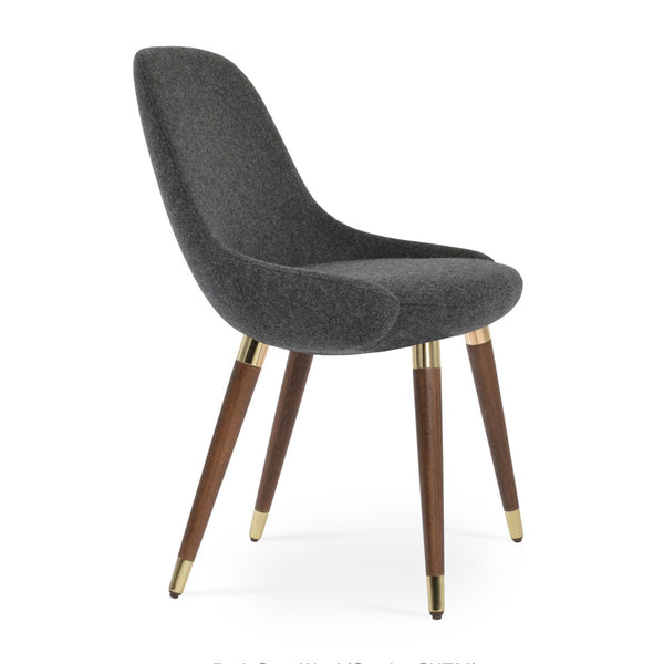 Gazel Wood is a contemporary dining chair with a comfortable upholstered seat and backrest on walnut wood finish legs. The legs may be ordered in different finished as a special order. The seat has a steel structure with “S” shape springs for extra flexibility and strength. This steel frame is molded by an injecting polyurethane foam. Gazel seat is upholstered with a removable zipper enclosed leather,leatherette or wool fabric slip cover that can be changed with professional help. Gazel Wood may be upholstered with variety of other colors as a special order with a minimum of quantity required. This contemporary chair is suitable for both residential and commercial use.