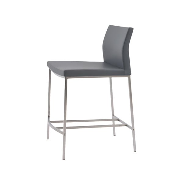 Pasha Metal is a modern stool with a comfortable upholstered seat and backrest on brushed stainless steel legs which are plastic tipped. The seat has a steel structure with “S” shape springs for extra flexibility and strength. This steel frame is molded by an injecting polyurethane foam. The seat is also available in a low back seat size. Pasha seat is upholstered with an easily removable slip cover. Pasha Stool Metal is suitable for both residential and commercial use.