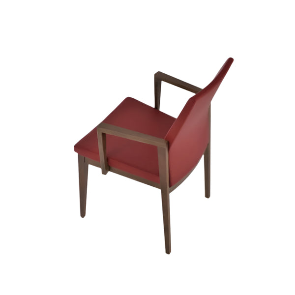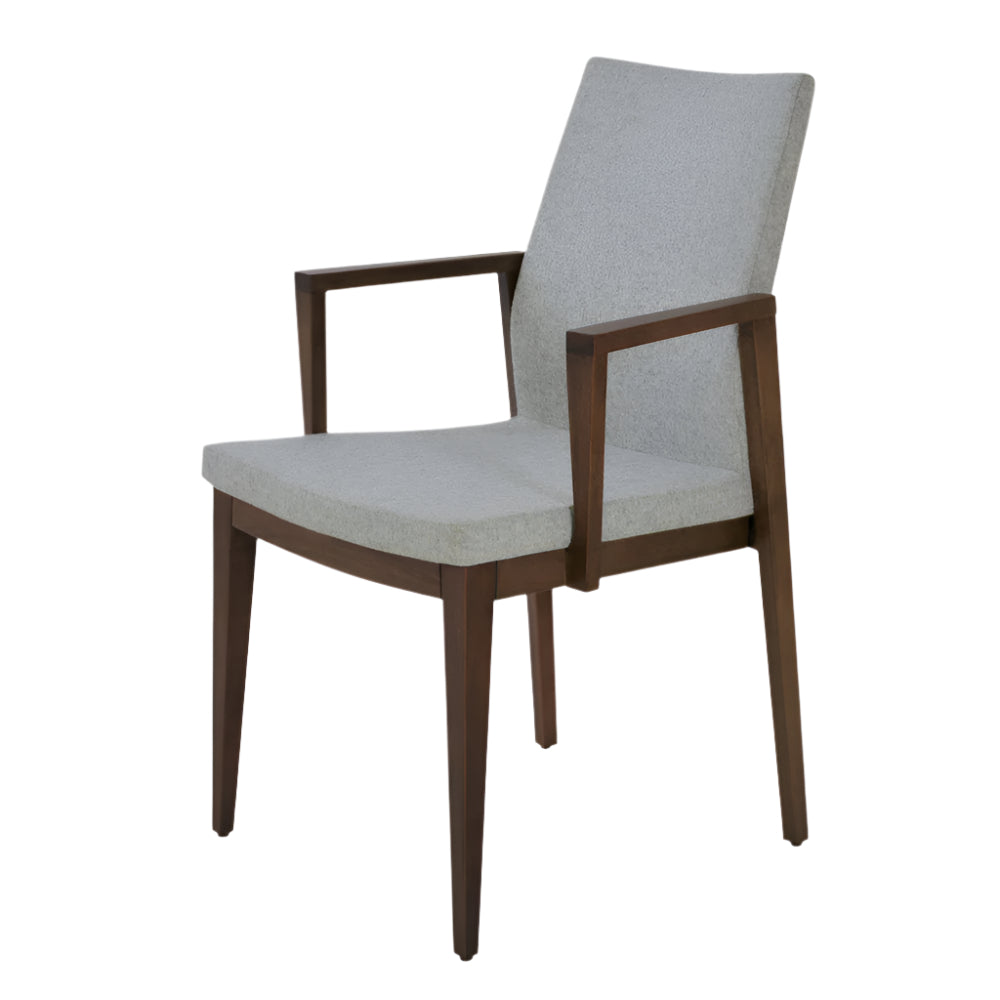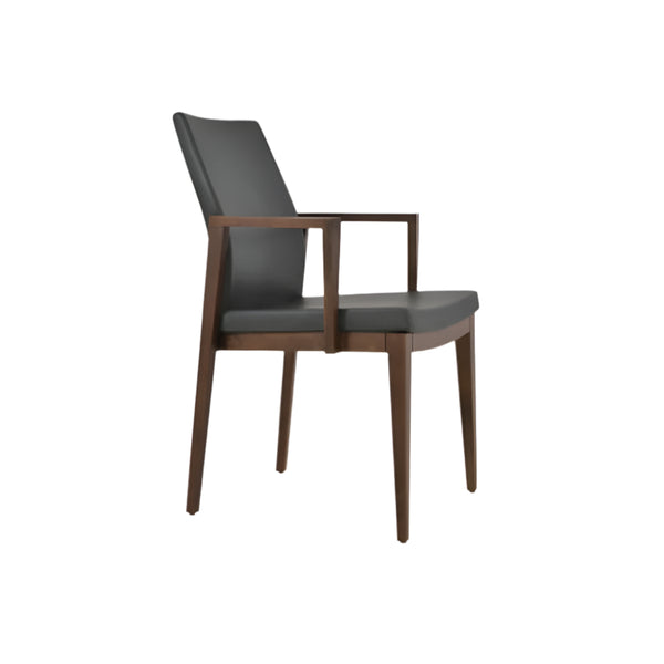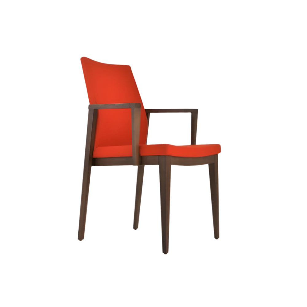 Pasha Wood Arm is an ergonomic dining chair with a comfortable upholstered seat and backrest on solid beech legs tipped with screwed plastic caps. Pasha Wood Arm is also available with strengthened side stretchers. The seat has a steel structure with “S” shape springs for extra flexibility and strength. This steel frame molded by injecting polyurethane foam. Pasha seat is upholstered with a removable velcro enclosed leather, PPM or wool fabric slip cover. These chairs are suitable for both residential and commercial use.