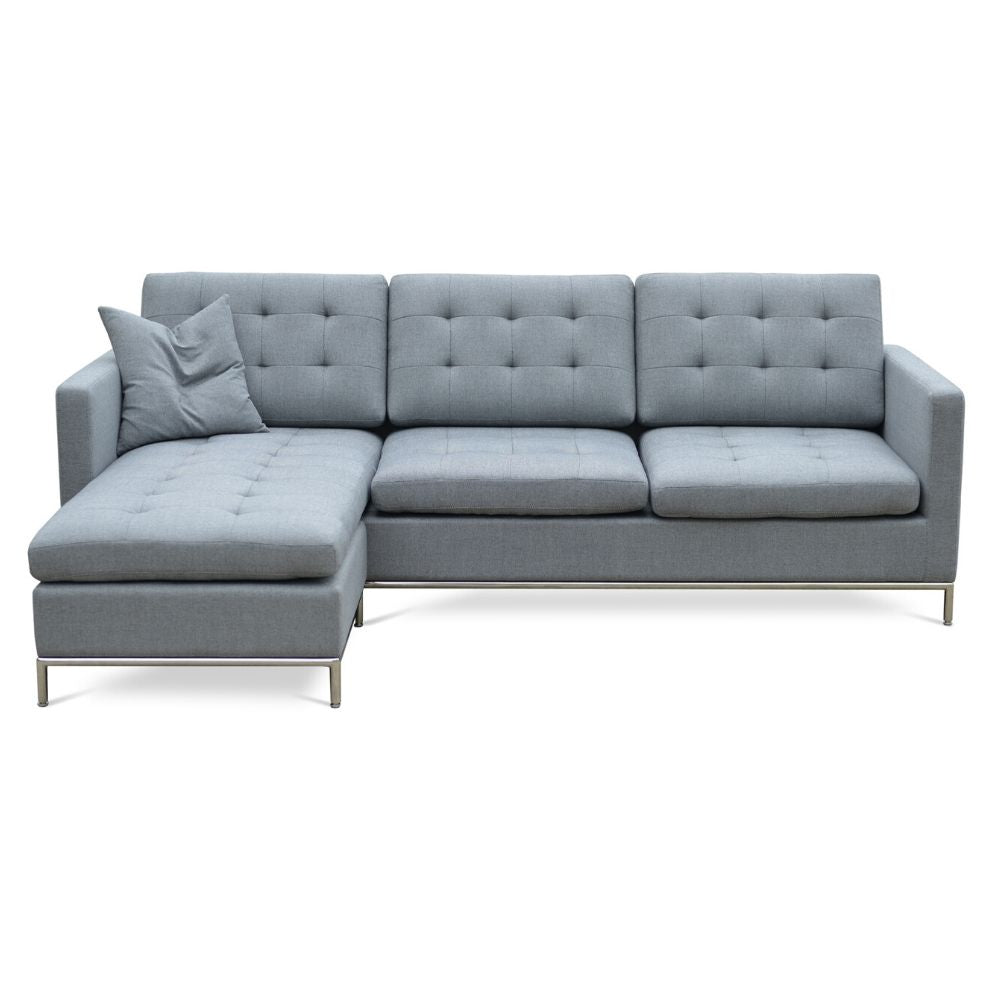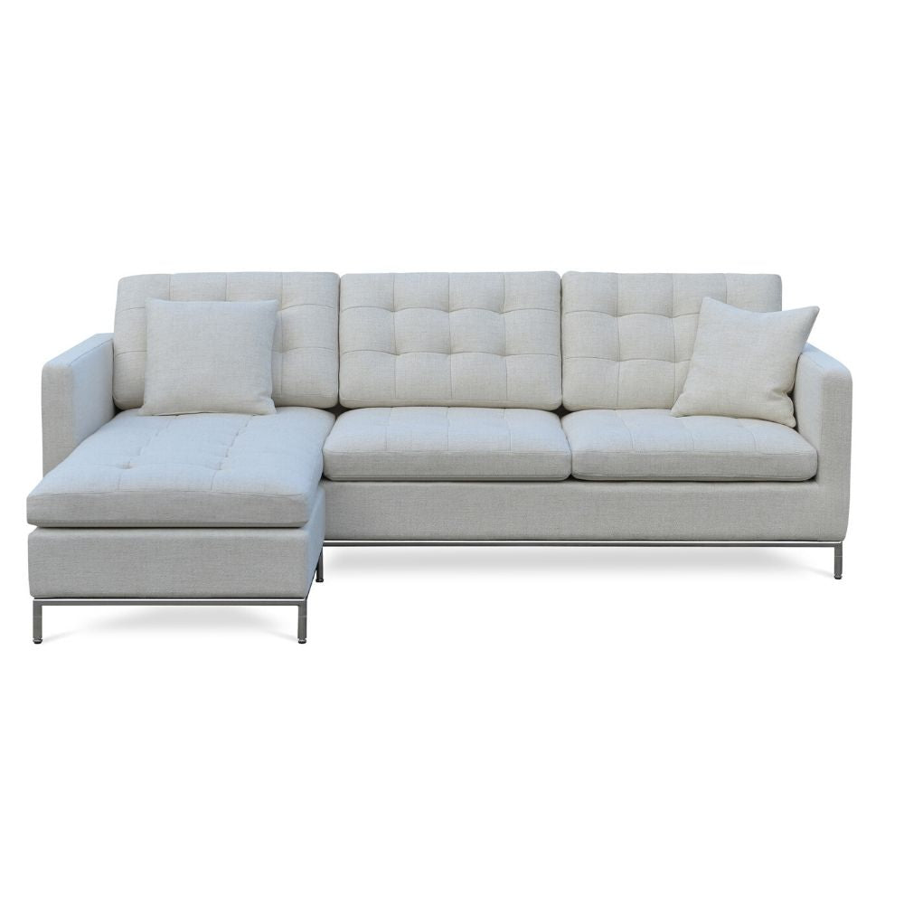 TAXIM SECTIONAL is a contemporary relaxing sofa with very comfortable cushions and frame on continuous tubular metal base which has cylindrical chromed steel legs tipped with plastic glides. The sofa has solid hardwood frame.The frame is upholstered with velcro enclosed slip cover.