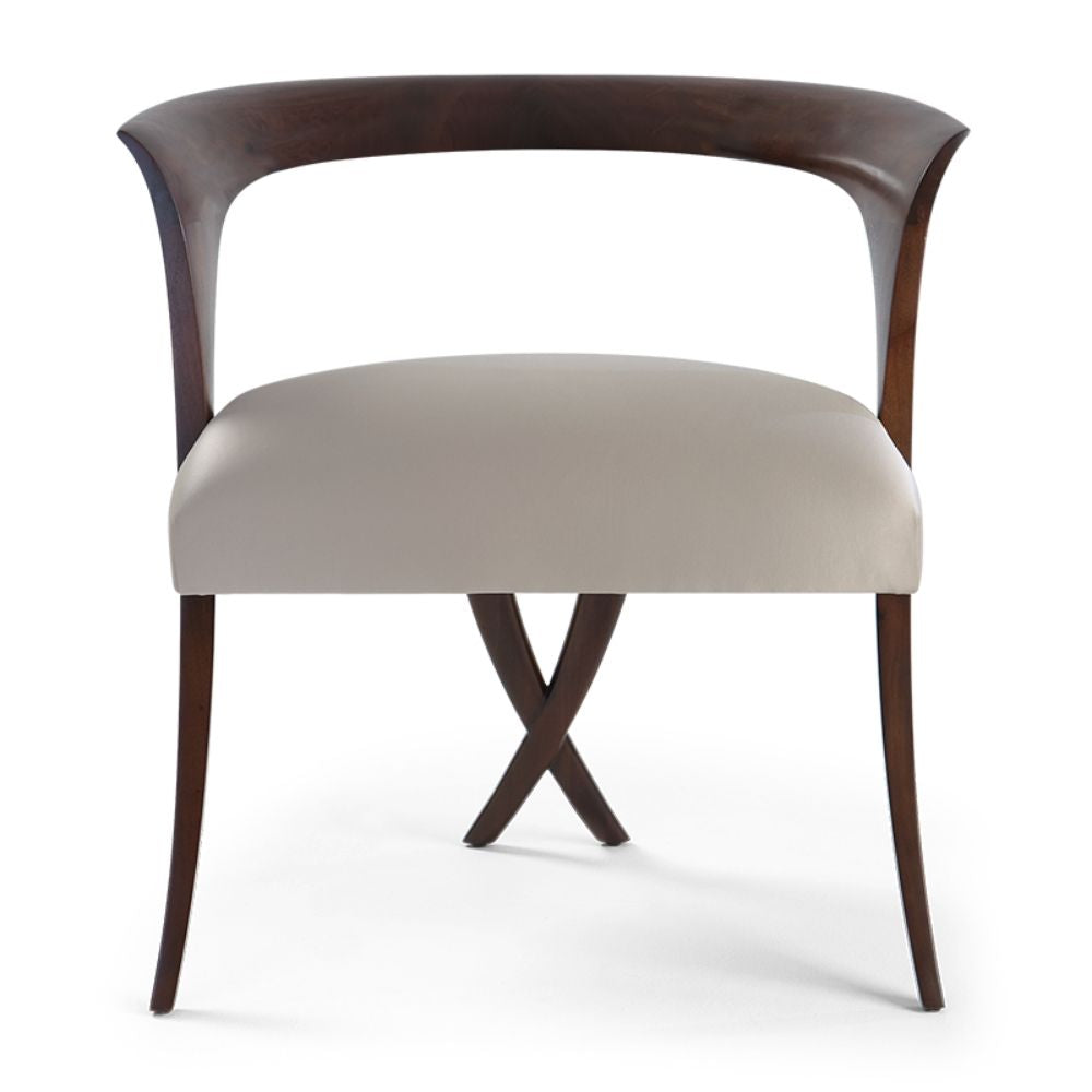 Pure contemporary magic from this COTE D'AZUR DINING CHAIR with cantilevered "cala" scroll back and arms, seamlessly carved into the front sabre legs, and the signature Chris-X back legs.