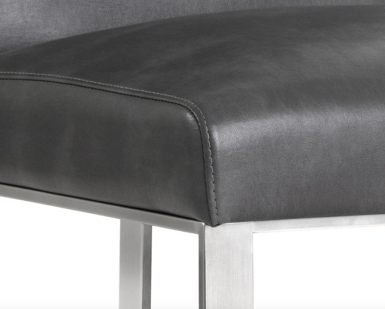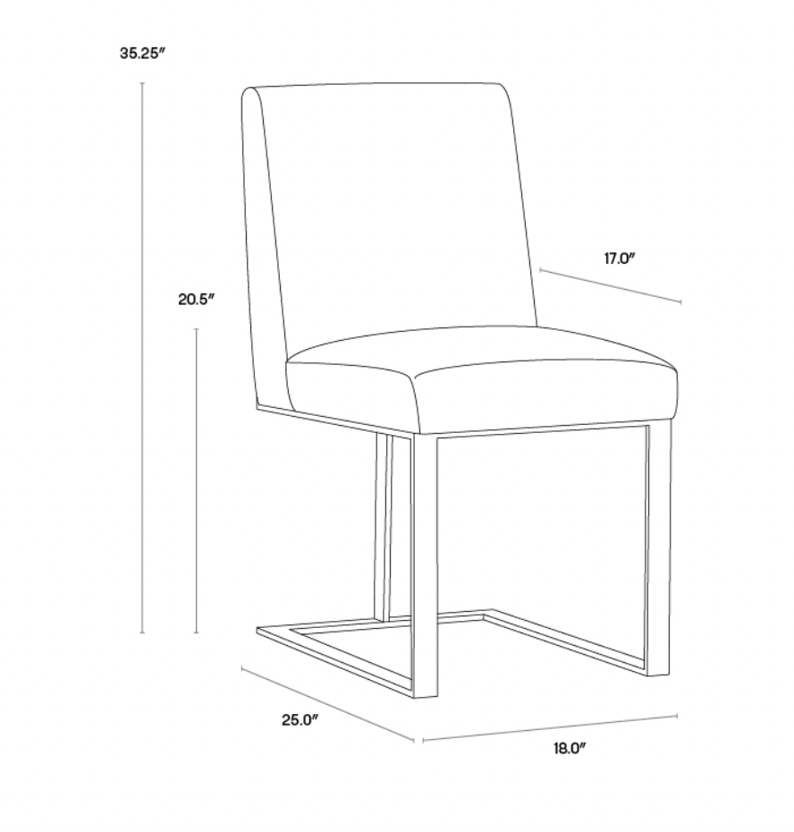 Stunning from all angles, this dining chair features a brushed stainless steel exposed frame. A streamlined seat in cantina black, magnetite and white bonded leather completes the look. Perfect for restaurants, bars and residential spaces. Also available in cantina black and white bonded leather with a brushed antique brass steel frame.