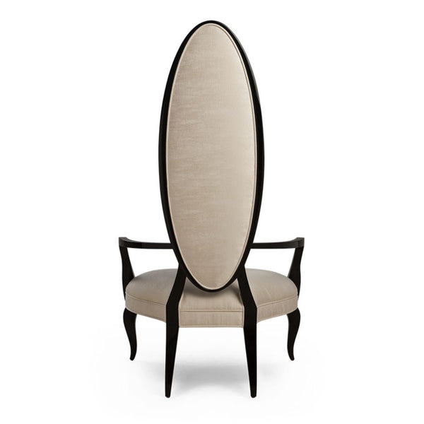 Gracefully subtle, this elegant oval back accent HAUTE MONTANA ARMCHAIR slips seamlessly into any world interior.