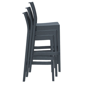 Jamaica bar stool is stackable and made of durable weather resistant resin reinforced with glass fiber. Non-metallic frame will never unravel, rust or decay. It is UV protected which insures the colors will not fade. For indoor and outdoor use.