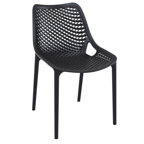 Air chair is produced with a single injection of polypropylene reinforced with glass fiber obtained by means of the latest generation of air molding technology with neutral tones. For indoor and outdoor use.