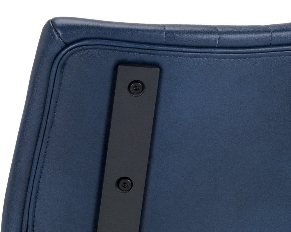 This versatile dining chair will seat guests in comfort and style. The industrial look is completed with a black steel frame and a channel tufted seat. Available in bravo admiral faux leather.