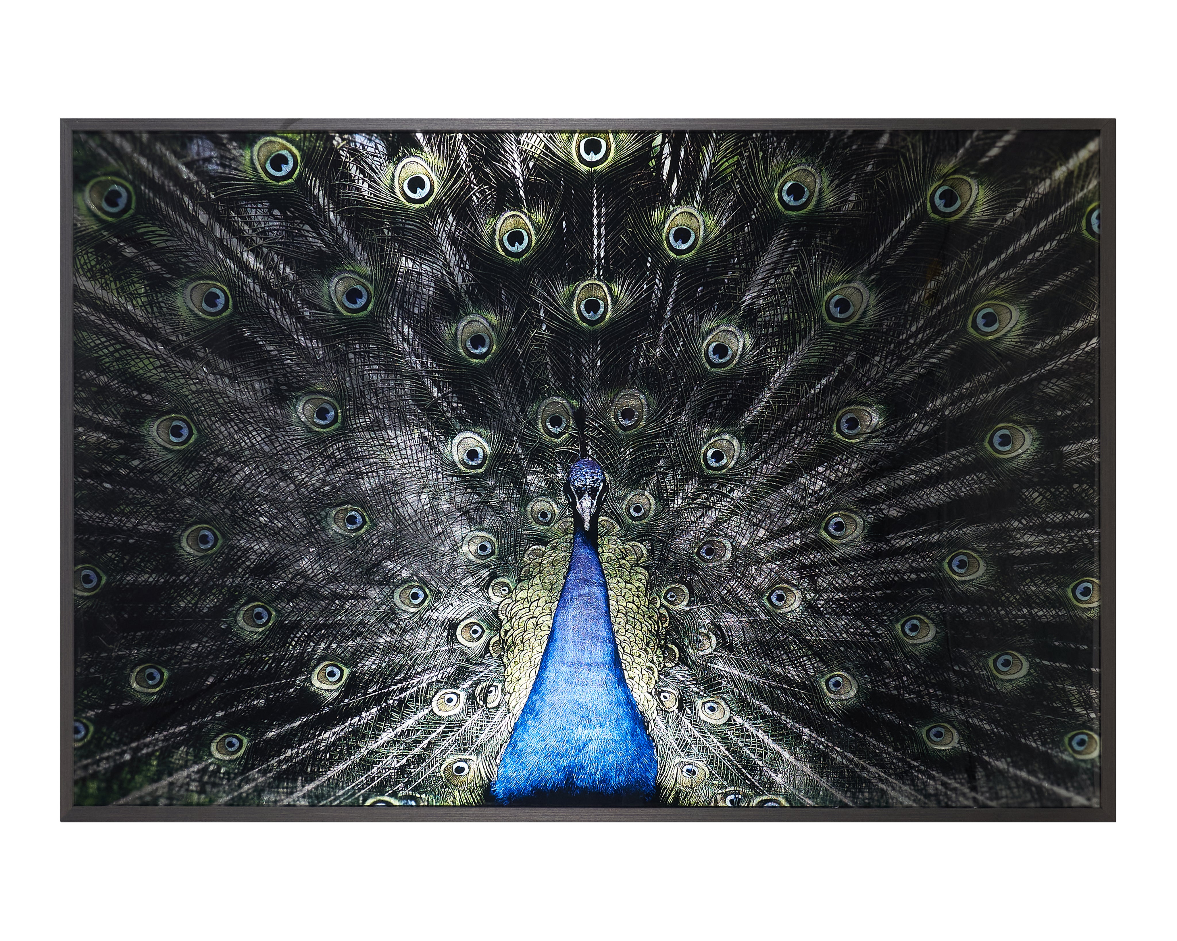 This stunning print from our Luxe Art collection is a bold portrait of a peacock spreading its lush blue and green feathers, symbolizing pride and nature's beauty. A labour intensive process begins with reverse printing on acrylic. Silver leaf is then slowly applied by hand for a reflective, shimmering look. Finished with a charcoal wood floater frame. Due to the reflective nature of acrylic and silver leaf, images on site may not capture the artisanal characteristics precisely. Hand-finished items will vary from piece to piece, resulting in a truly one-of-a-kind artwork.