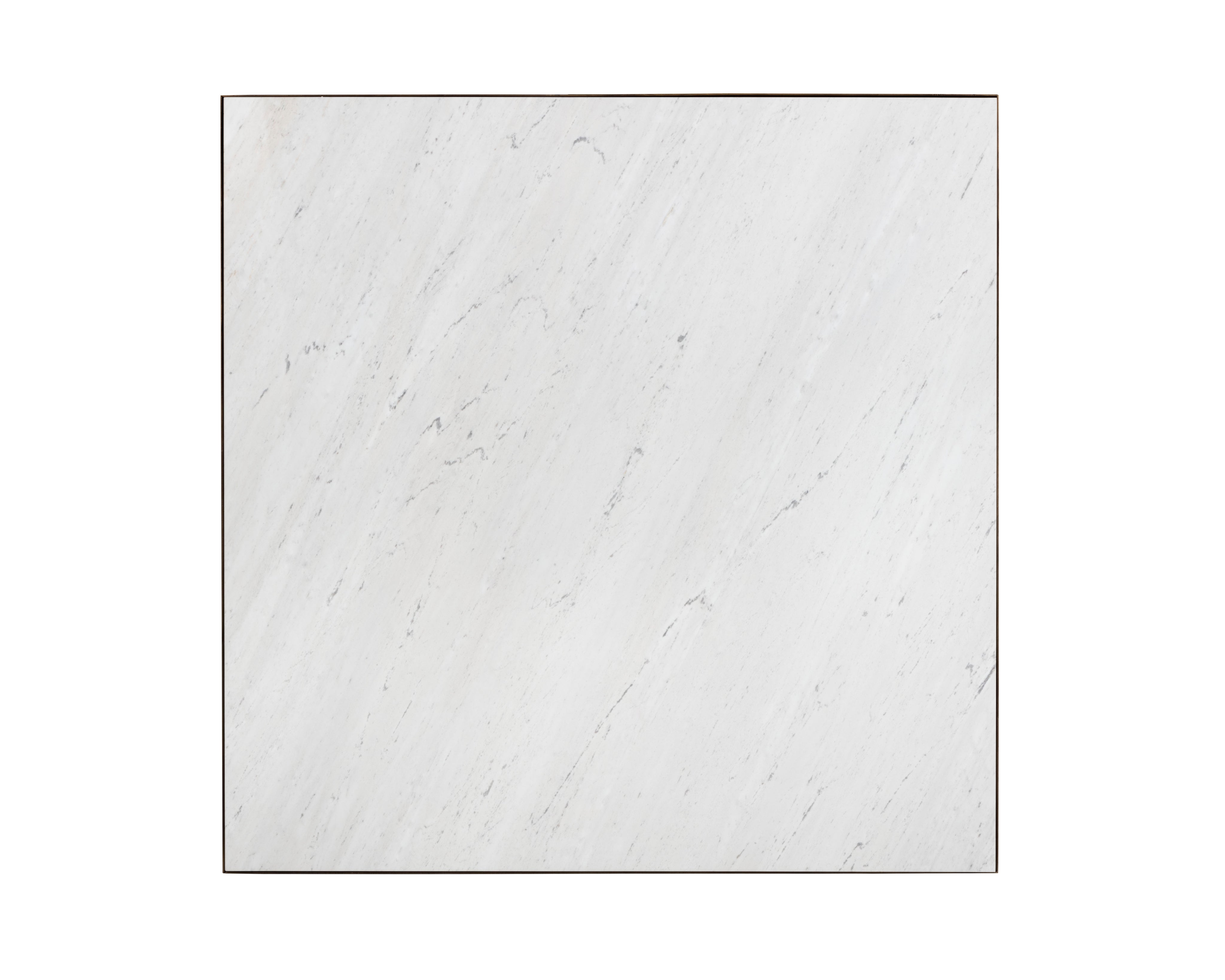 This large and dramatic coffee table is sure to be the center of attention in any room. A white Volakas marble top is beautifully paired with a powdere-coated rustic bronze steel frame in an intriguing webbed pattern. Suitable for lounge and living spaces in residential and commercial environments. As marble is a natural material, unique veining, pitting, fissures, micro-cracks and colour variations are all characteristics that add to the uniqueness and beauty of each piece.