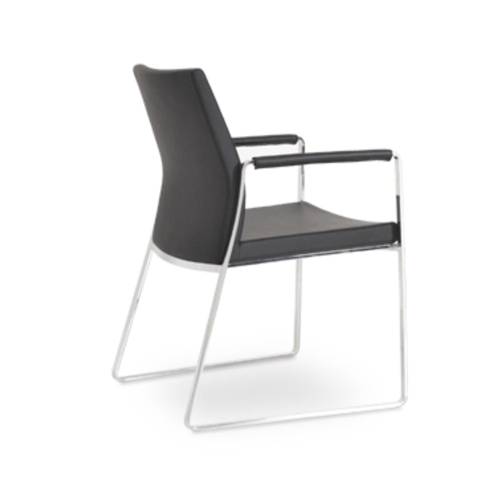 Pasha Slide Armchair are built on chrome plated steel as well as black powder pain steel tubes. The Pasha seat has a steel structure with “S” shape springs for extra flexibility and strength. This steel frame molded by injecting polyurethane foam. Pasha seat is upholstered with a removable Velcro enclosed Organic fabric, Leatherette, Geniune Leather and Camira wool slipcover which has a 5 year guarantee against normal "wear and tear." The Pasha collection is suitable for both residential and commercial use.
