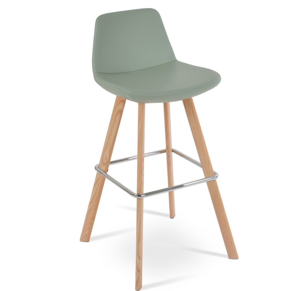 PERA SWORD STOOL is a unique stool with a comfortable upholstered seat and backrest on a powder-coated steel frame. Each leg is tipped with a plastic glide inserted to the foot. With its chromed steel tubular footrests, it becomes an ideal solution for kitchen and bar counters. The footrests are fixed inside the four-leg frame. The seat has a steel structure with “S” shape springs for extra flexibility and strength. This steel frame molded by injecting polyurethane foam. Pera seat is upholstered with a removable velcro enclosed leather, PPM or wool fabric slip cover. The stool is suitable for both residential and commercial use and can be ordered as counter or bar stool. Pera Sword are available with swivel seat options too.