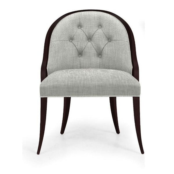 With its beautifully contoured back and tapered legs, this already striking tufted salon PISSARO ARMCHAIR is further enhanced by scrolled accents carved out of solid mahogany.