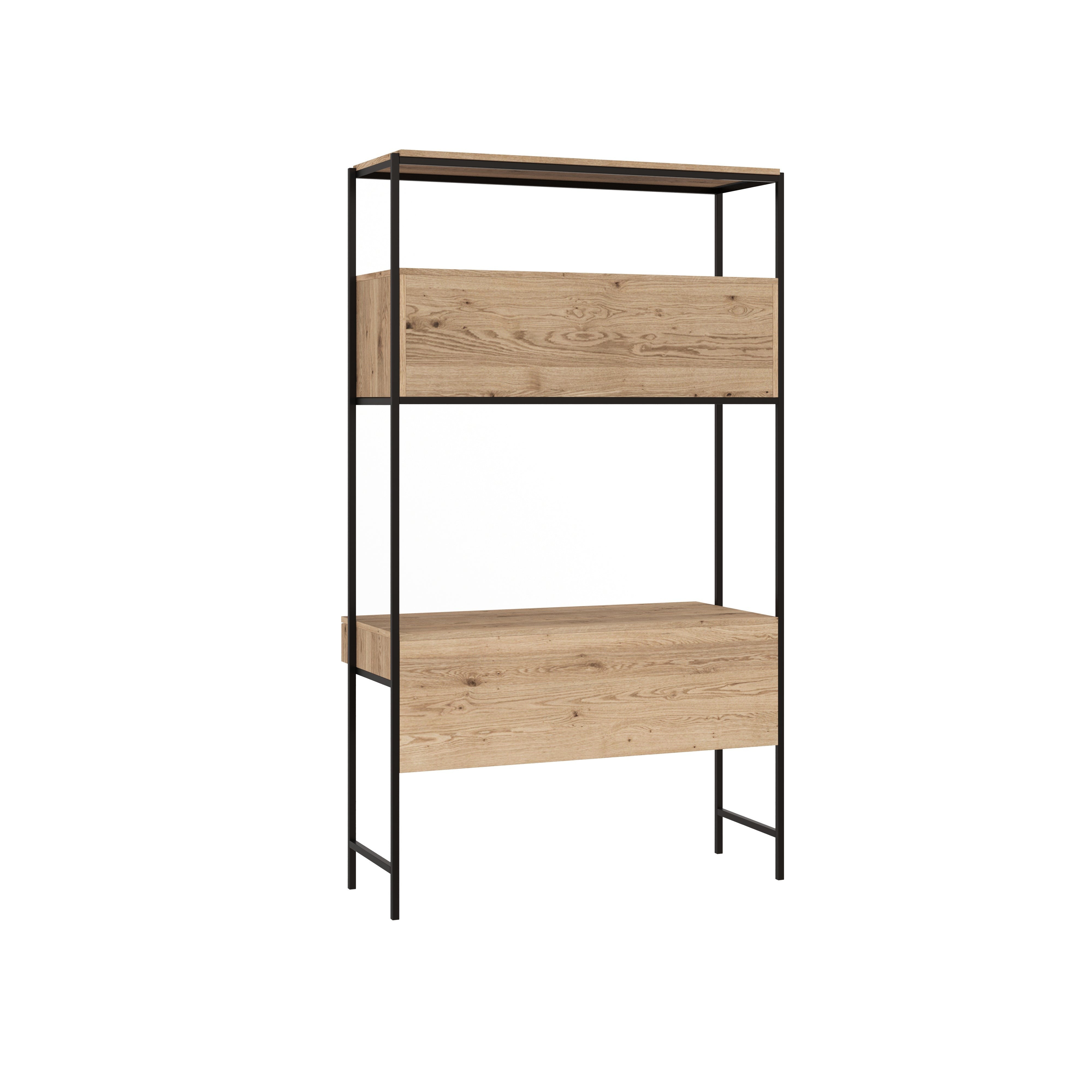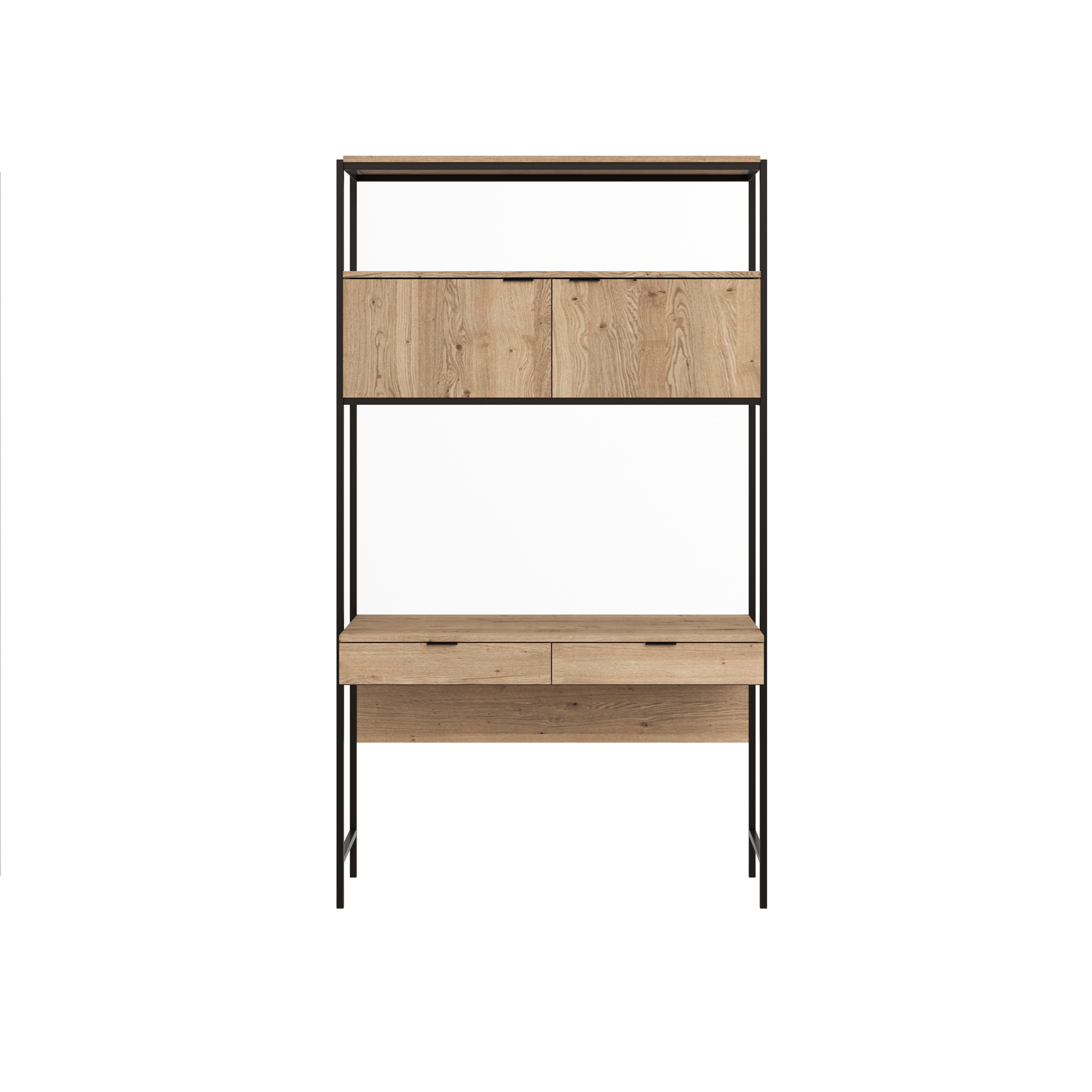 Crafted in Indonesia, this beautiful wall desk will bring modern style and elegance to living, lounge and home office spaces. Designed with naturally rustic finished oak wood and a matte black iron frame. Features two cabinets and two drawers for added style and function. As wood is an organic, porous material, these pieces will contain natural variation of texture and may also exhibit fine indentations and cracks. Wood pieces will also display a disparity of colour and grain, and visible knots and burls that add to the character of each piece.