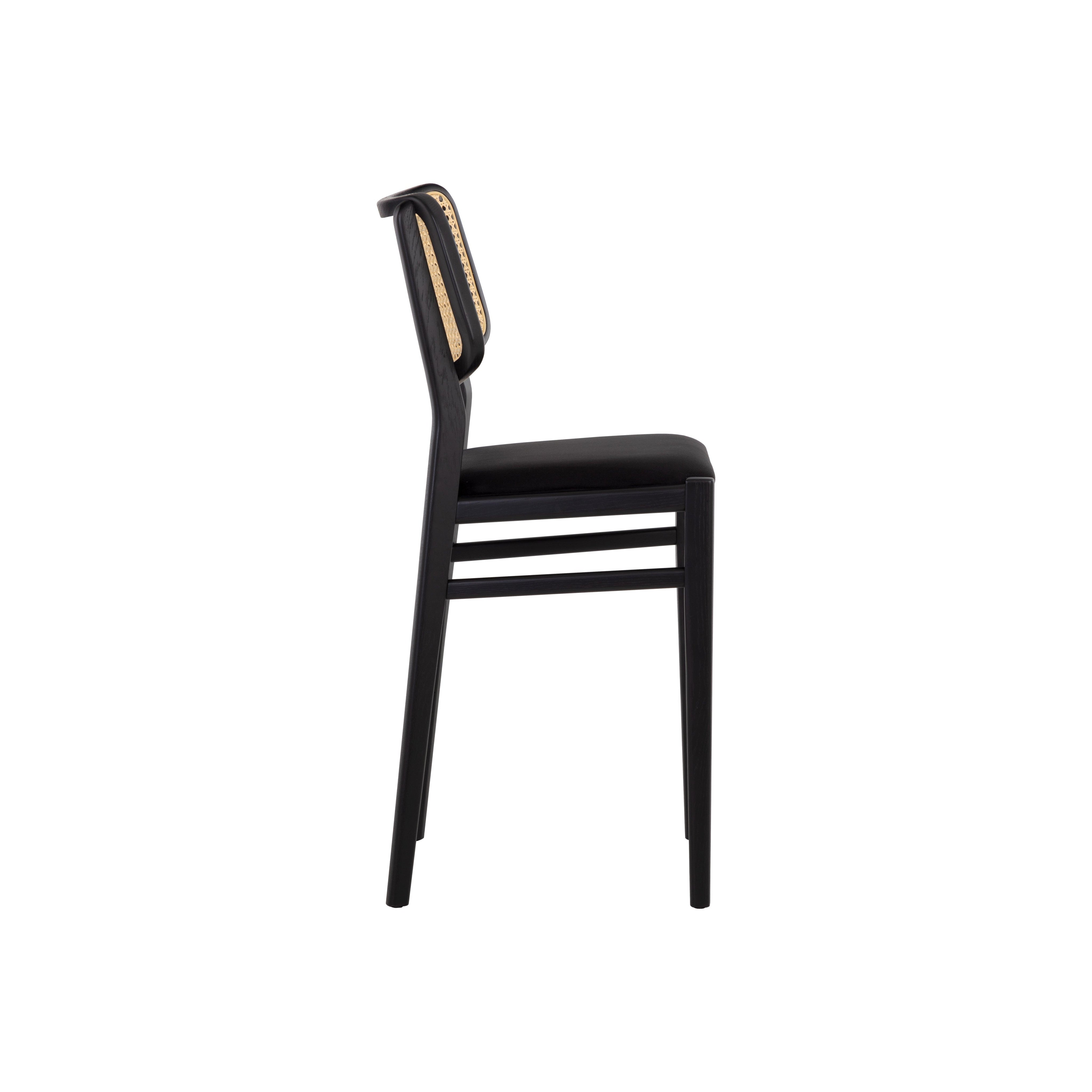 This stylish counter stool will bring life to any dining and kitchen space. Features a beautiful black seat with a natural rattan seatback. A solid black oak wood frame complete this naturally edgy design. Handle With Care: This design has been crafted with rattan. This artisan-crafted material features intricate weaving that results in natural variations where no two pieces are alike. Colour and texture differences are to be expected and embraced with this natural material. Due to the weaving process used, the fibres in this material may display shorter or longer lengths where the weaving ends. Visit our Product Care page for more information on how to ensure the lasting beauty of this piece.