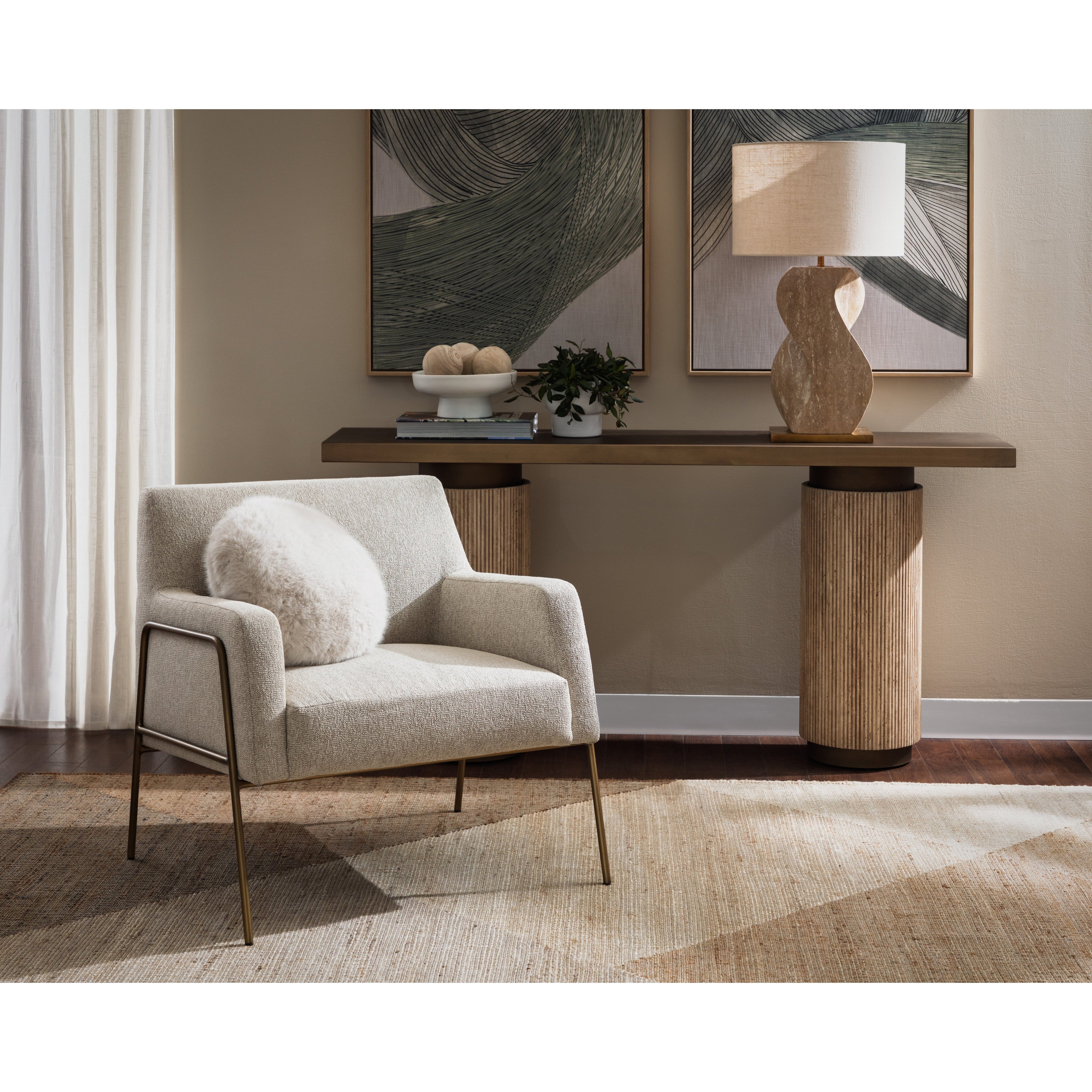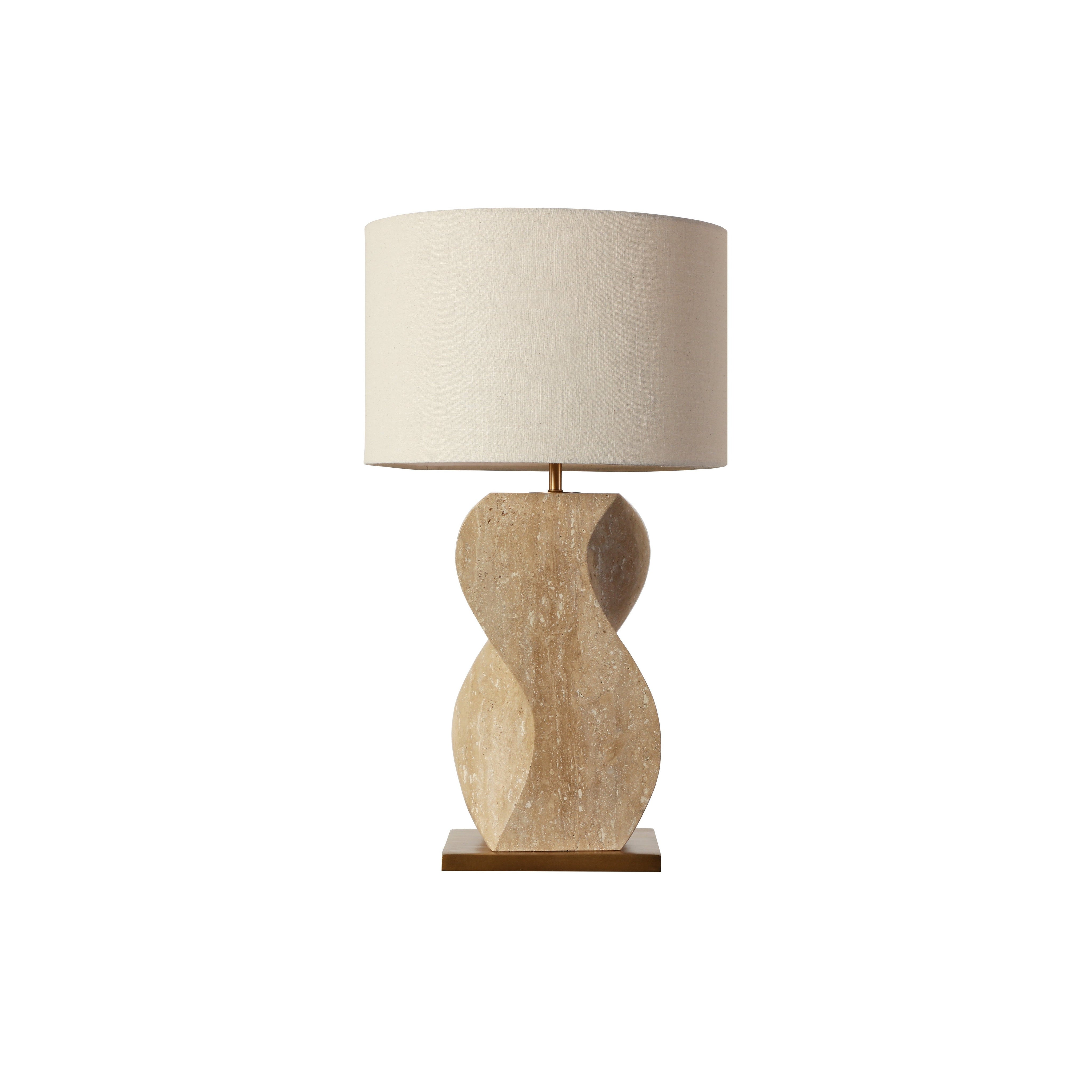 Sculptural and grounded, the Anusha Table Lamp introduces a refined sense of balance to any space. Carved from solid travertine, its serpentine base reveals sweeping contours and unique tonal variations that evoke the elegance of a modern art piece. A textured linen shade and warm brass base brings added contrast to the overall design.