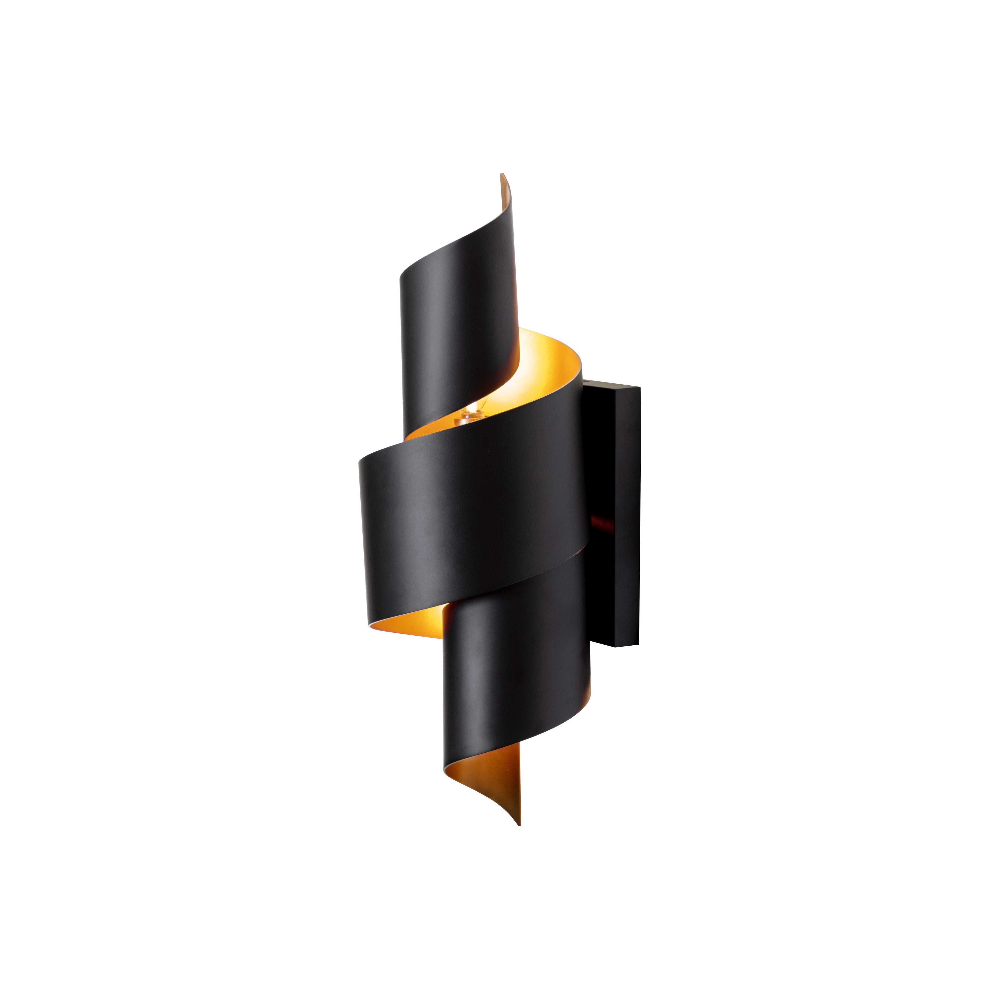 Complemented by the rich tones of black and gold, the Aphelion Sconce exudes elegant modern contemporary style. Fully constructed from metal, the twist design beautifully enhances the dual tones when illuminated.