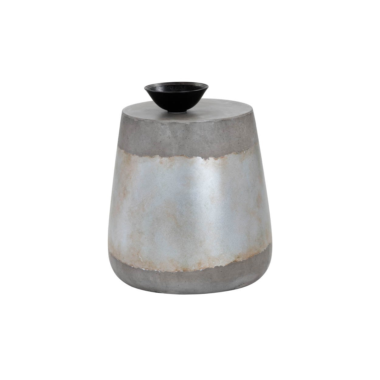 A beautiful side table with a stunning pop of metallic. The Aries is stocked in both gold and silver foil accents that pair perfectly with the industrial grey concrete. A versatile and functional piece