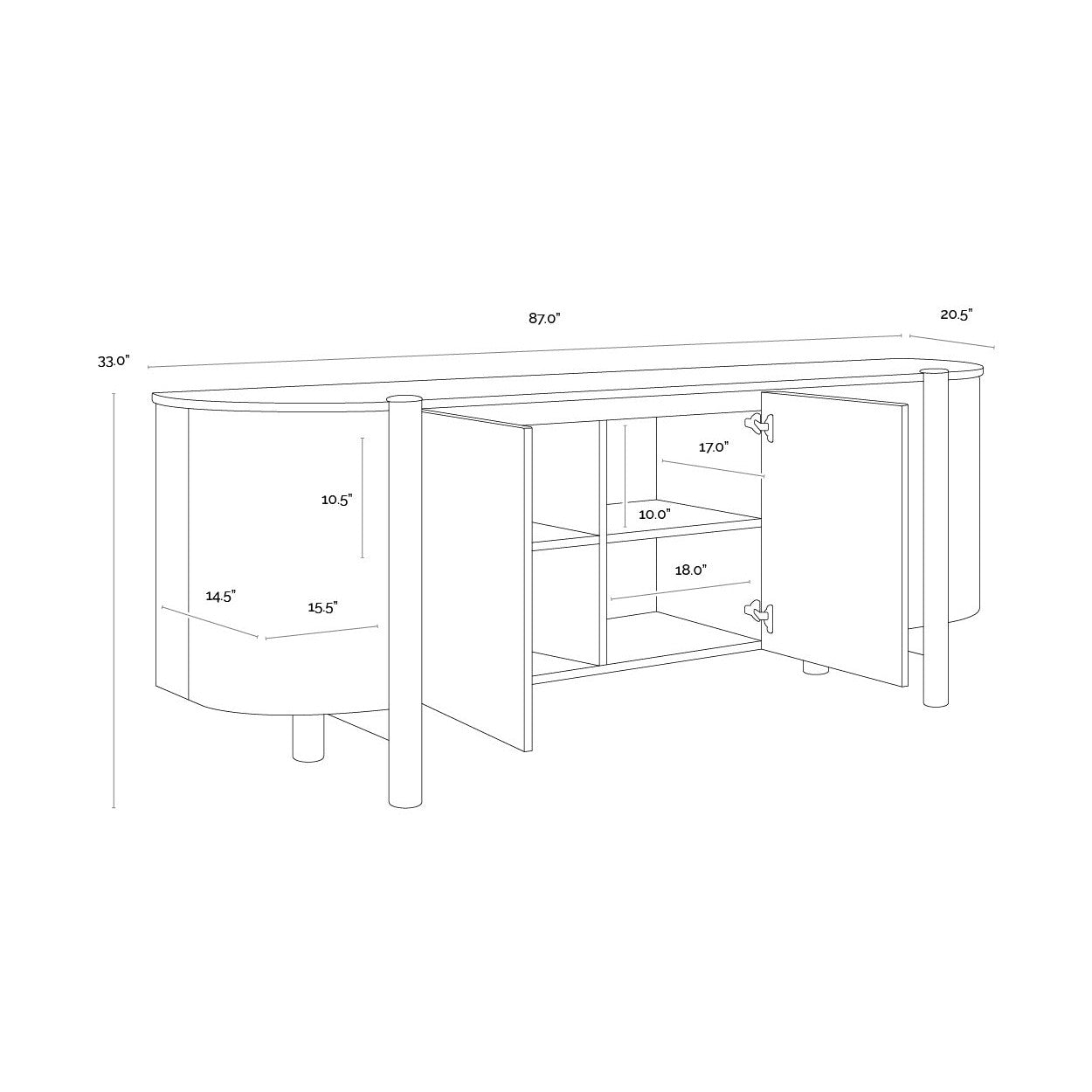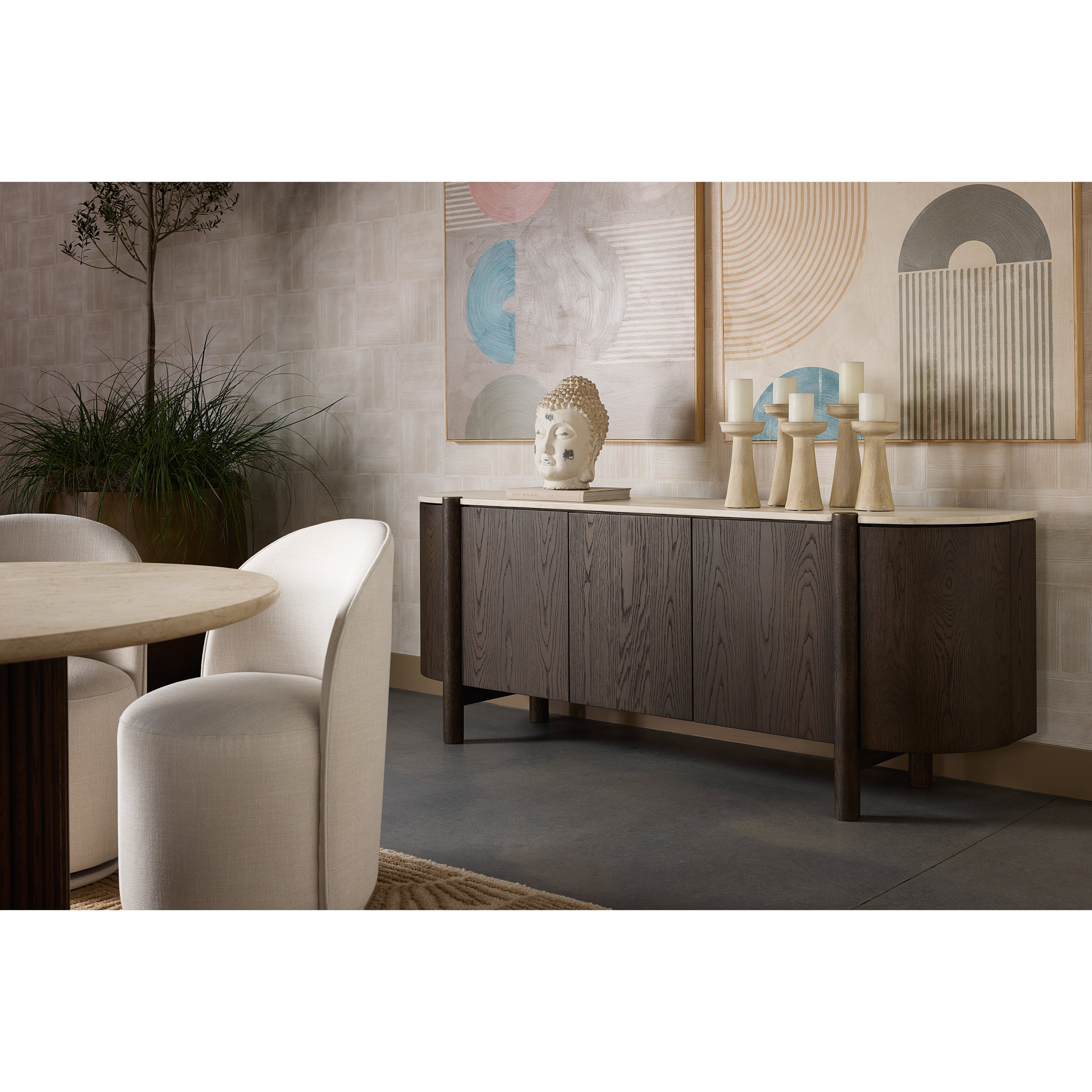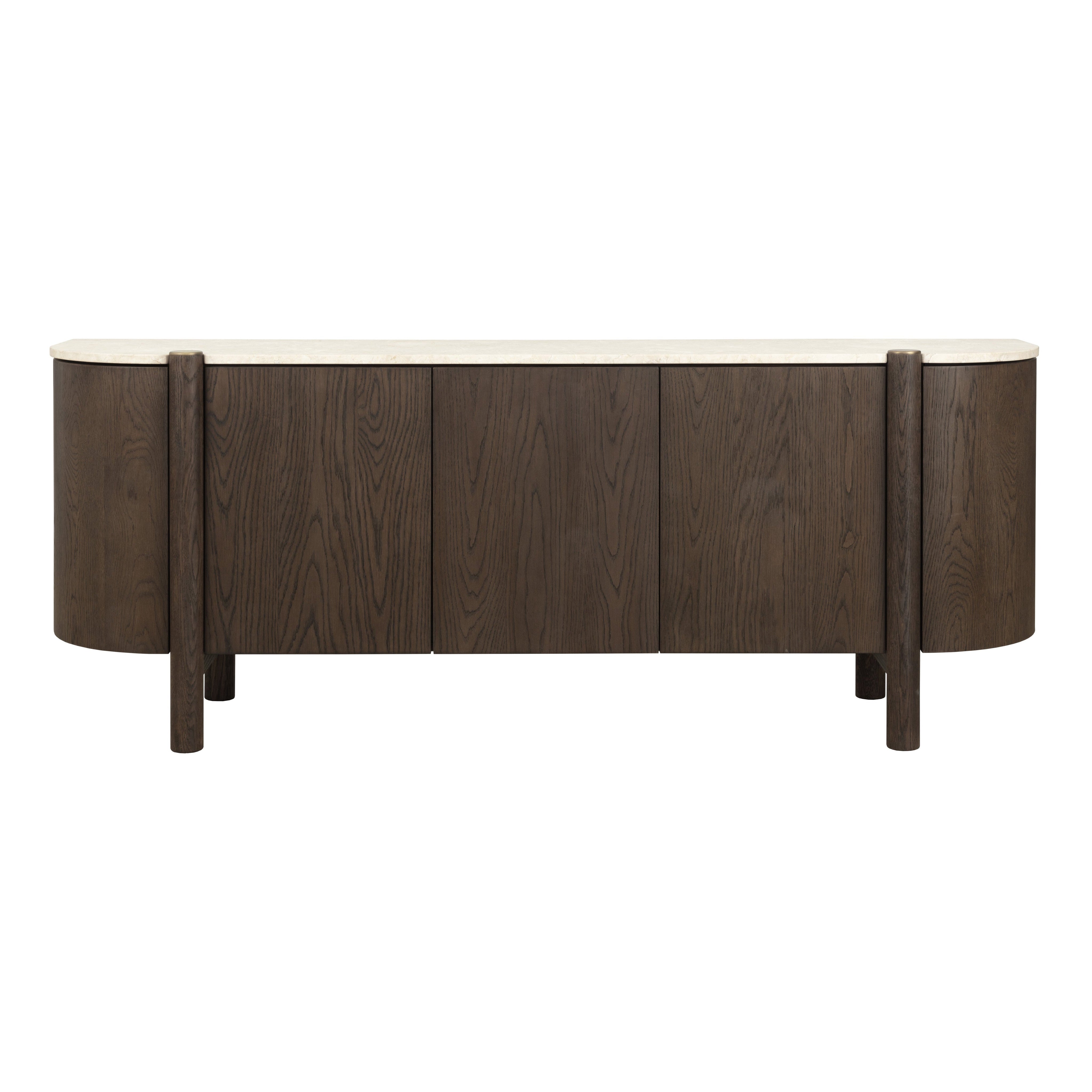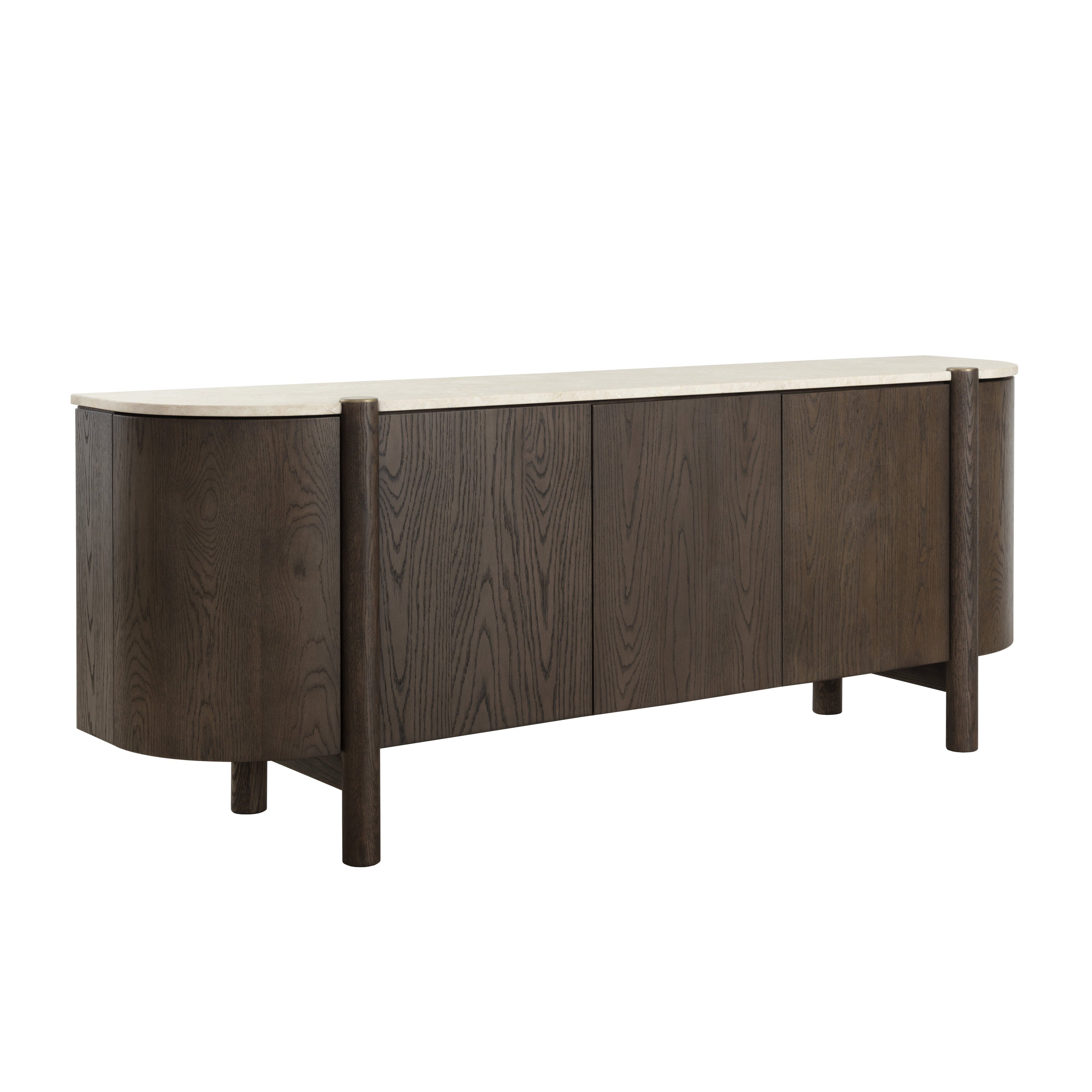 The Banyan Sideboard is a standout with rounded curves and sculpted edges. Crafted to perfection with a cream marble top and a solid oak wood veneer base, this sideboard is a modern masterpiece.