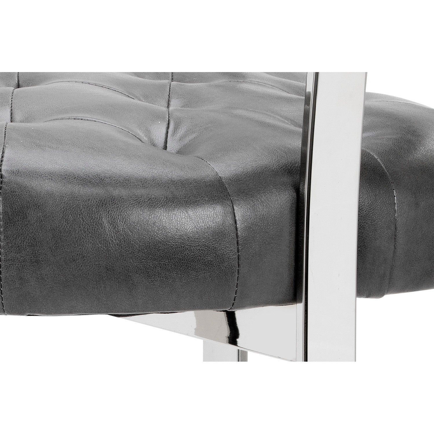 This ultra contemporary stool features a T-shaped back, tapered arms and an antique brass crown base. Stocked in cantina magnetite bonded leather. Perfectly suited for commercial and residential settings. Suitable for various dining, kitchen and bar spaces of all sizes. Handle with Care: This design has been crafted with bonded leather. Bonded leather is a blend of reconstituted leather and synthetic materials crafted to reflect the natural characteristics of leather; as such, colour variations, markings, wrinkles, grooves and light scratches are acceptable and appreciated characteristics. No two pieces are alike. Visit our Product Care page for more information on how to ensure the lasting beauty of this piece.