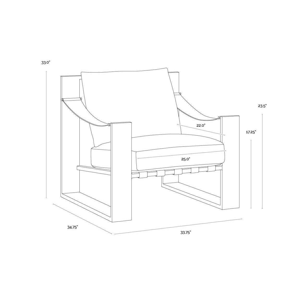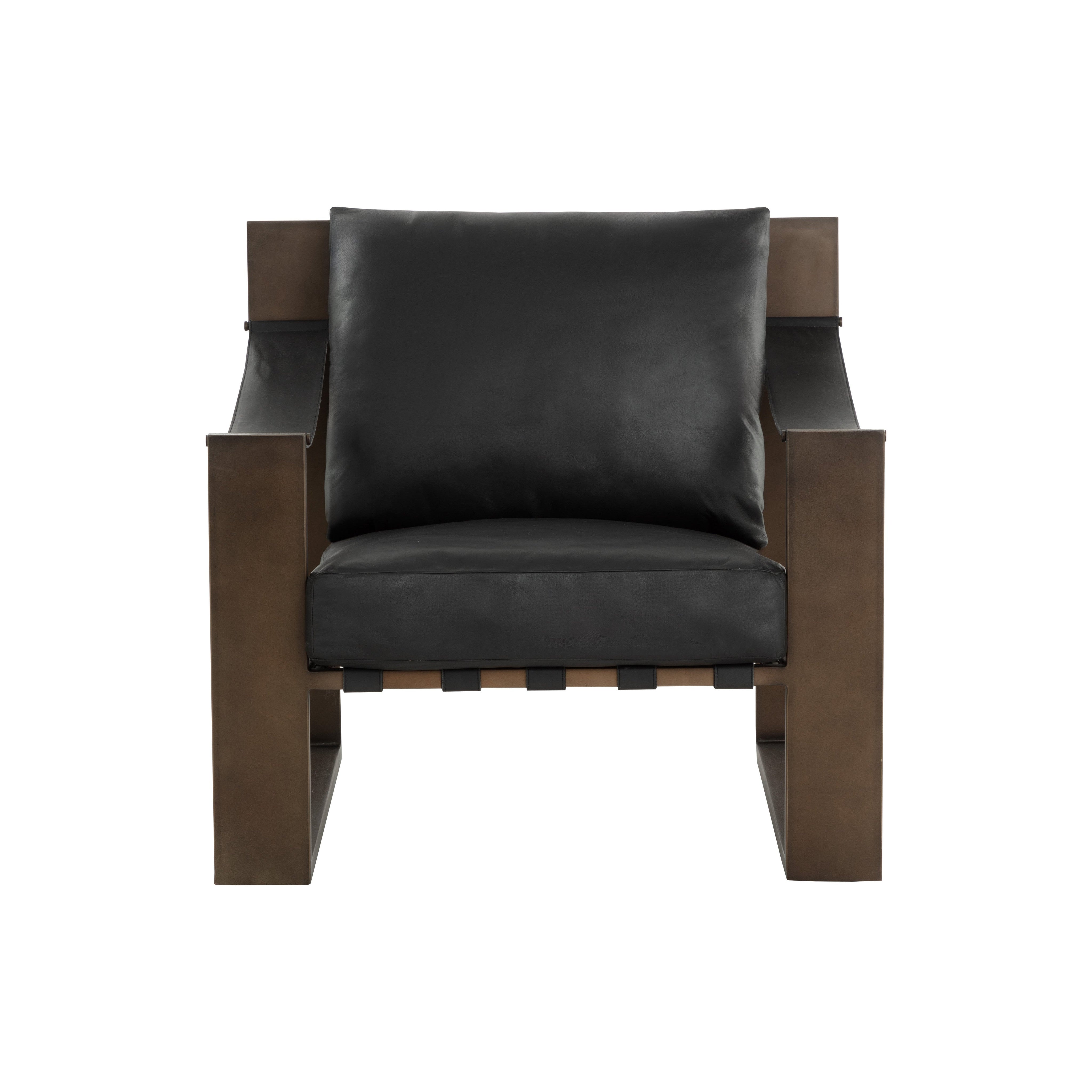 The Berke Lounge Chair brings an impressive modern look. Soft cushions are upholstered in buttery charcoal black leather with matching leather strap detailing. A strong iron frame lends this lounge chair a bold, geometric design.