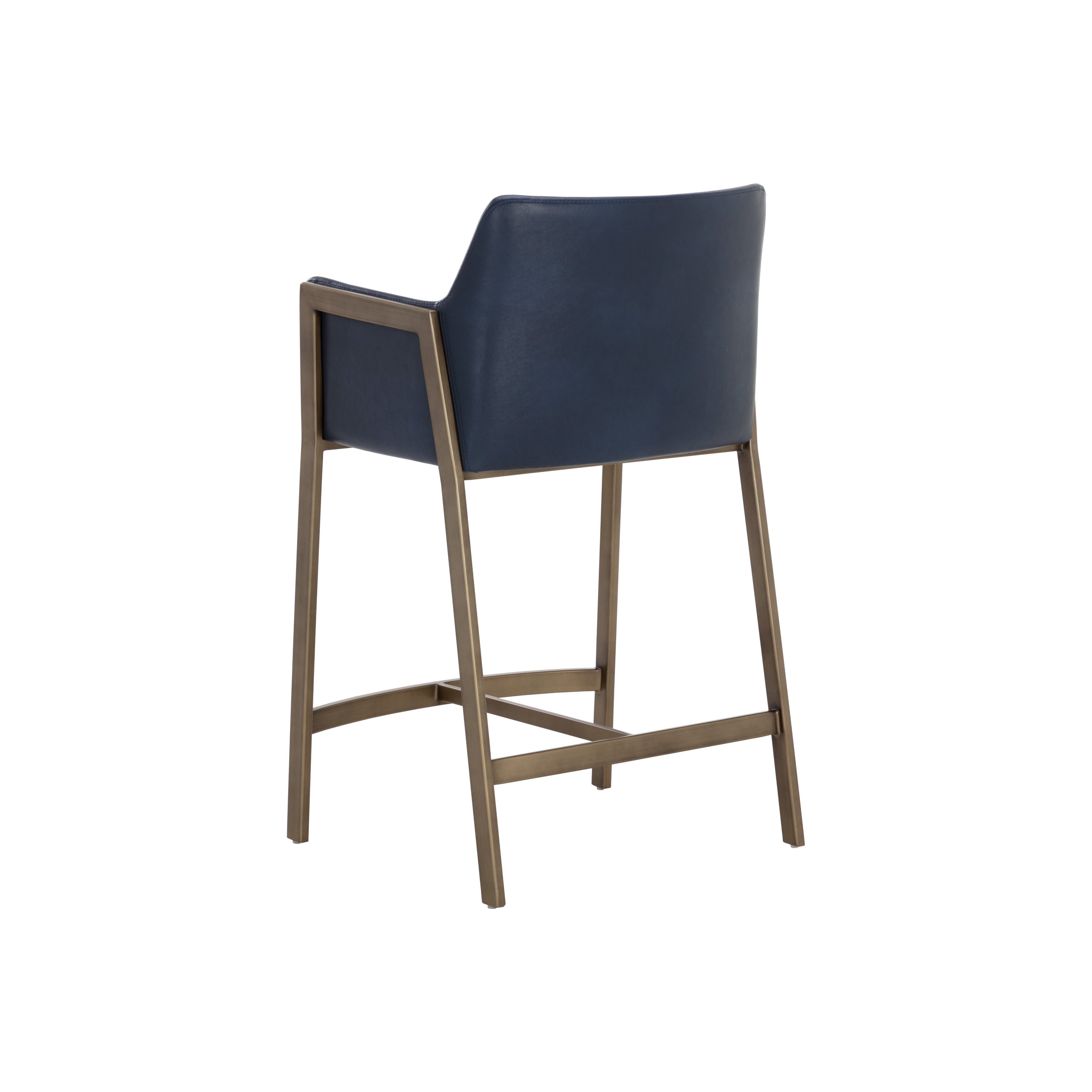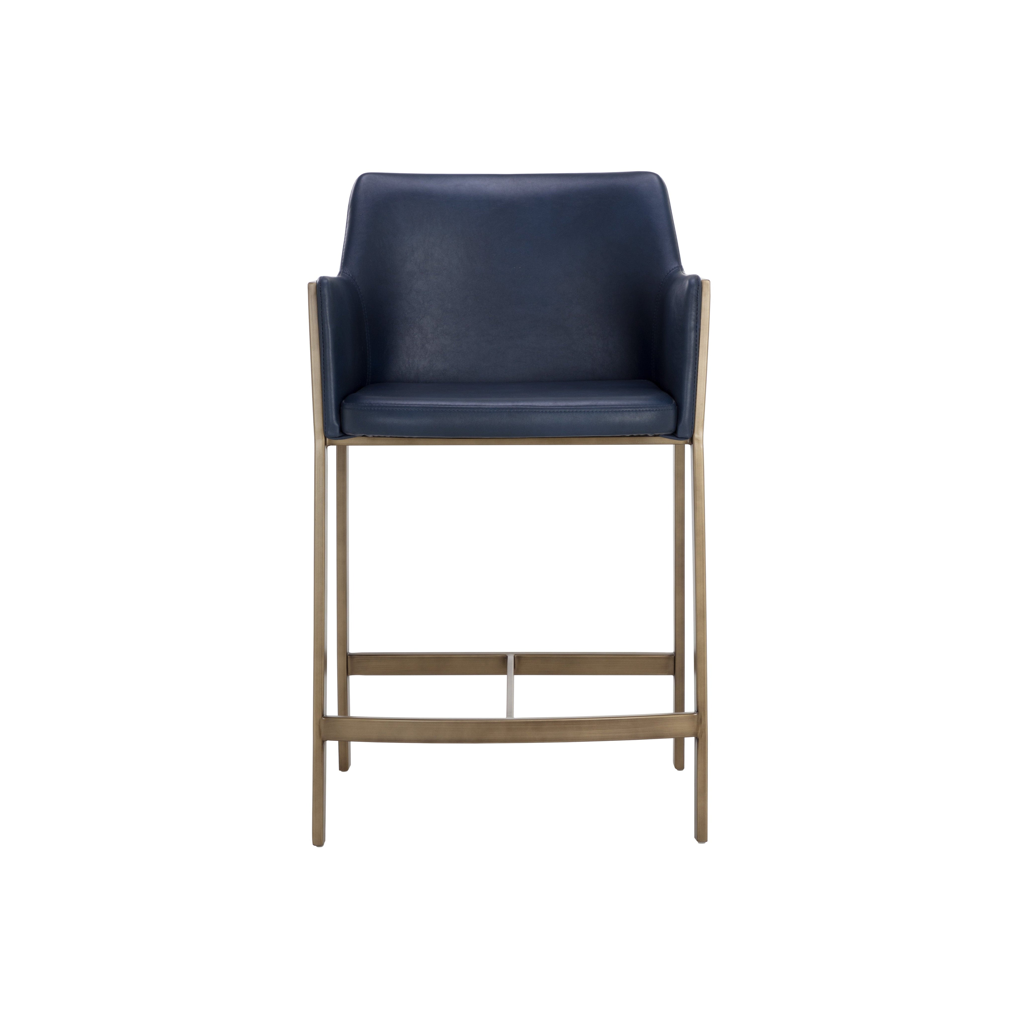 The Bernadette Counter Stool features a shapely design with a powder-coated antique brass frame. Upholstered in bravo admiral faux leather for added style and durability. Handle With Care: This design has been crafted with faux leather. Faux leather is manufactured to reflect the natural characteristics of leather; as such, colour variations, markings wrinkles, grooves, and light scratches are appreciated characteristics. No two pieces will be alike. Visit our Product Care page for more information on how to ensure the lasting beauty of this piece.