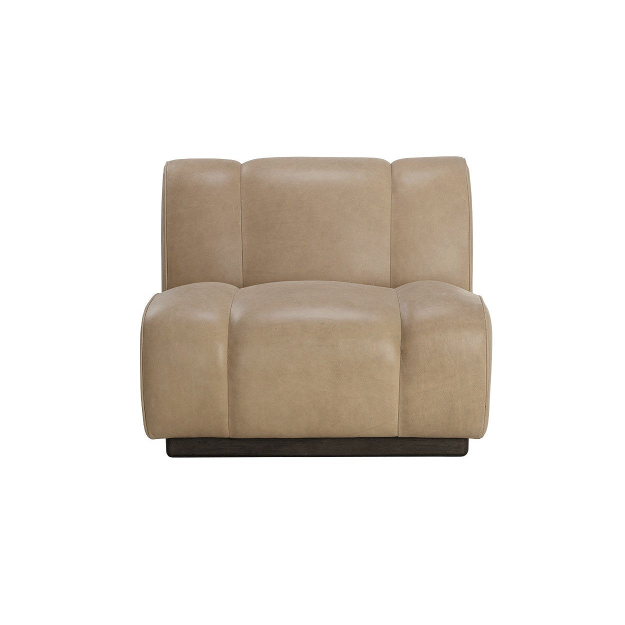 The elegant proportions and plush seating of the Blaise Swivel Lounge Chair invite you to indulge in luxurious comfort. Fully upholstered in our sahara sand aniline leather with a contrasting dark brown rubberwood base for a handsome addition to any space.