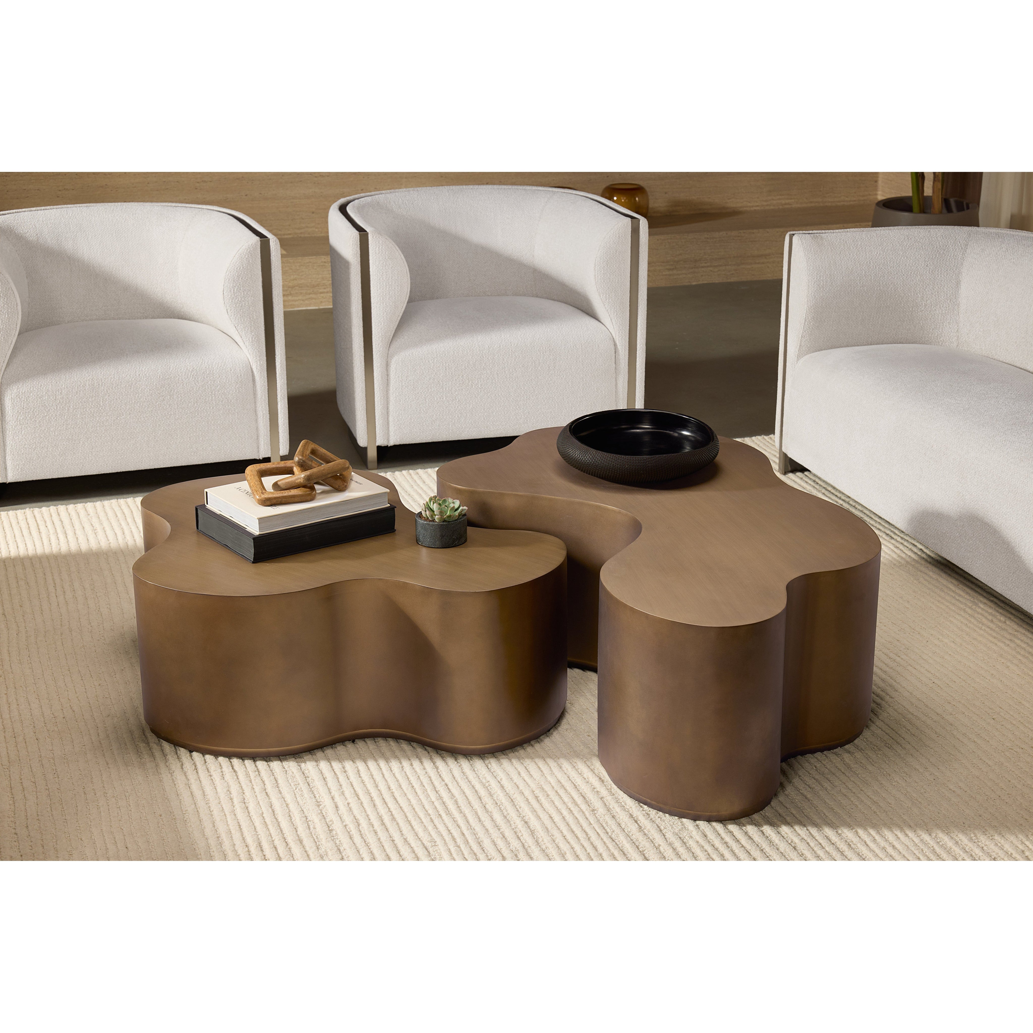 Free-flowing curves give the Boise Nesting Coffee Tables fluid silhouettes that create the perfect accent in any living space. Crafted from aluminum with antique brass and antique bronze finishes, these versatile tables can be nested together or arranged separately, offering flexibility and style.
