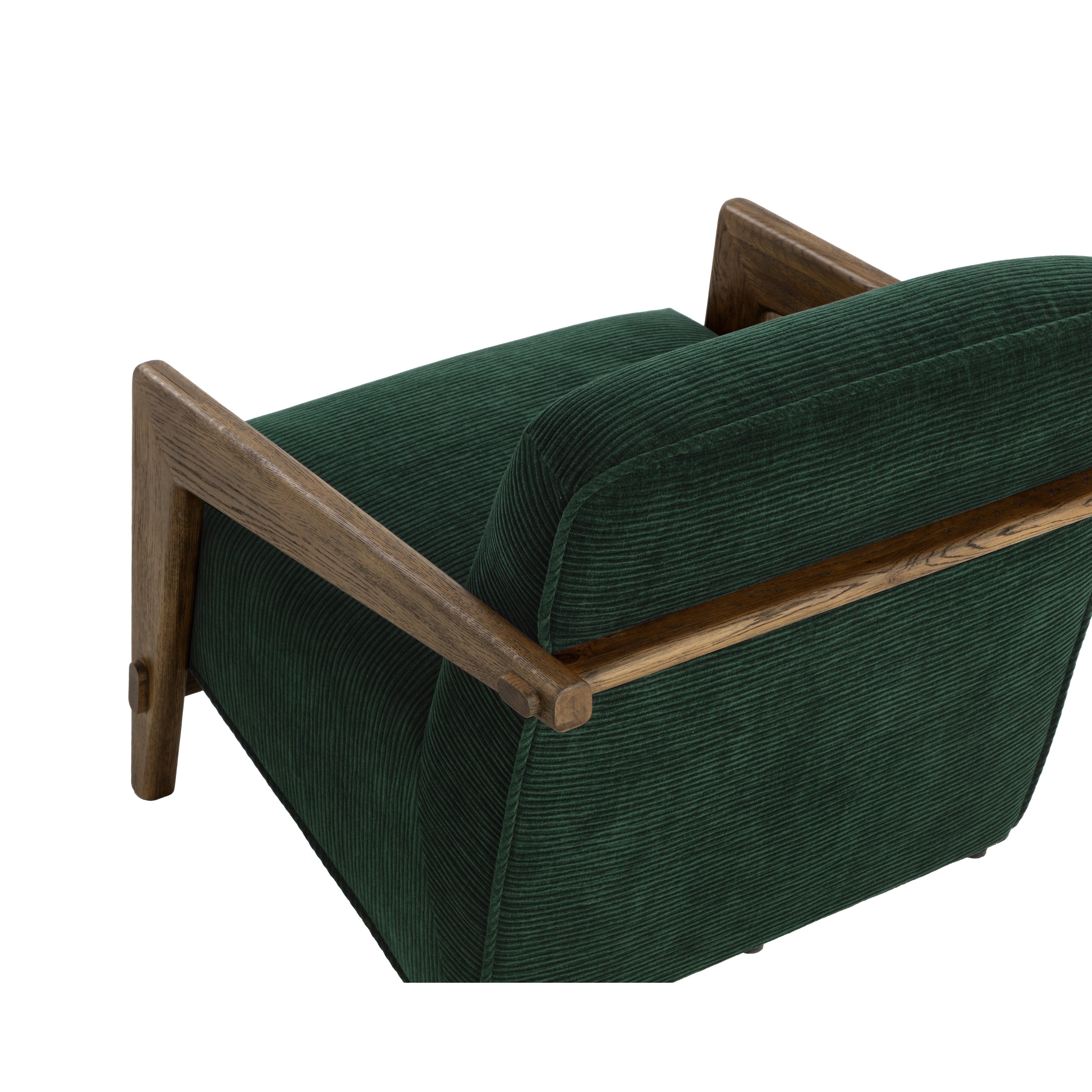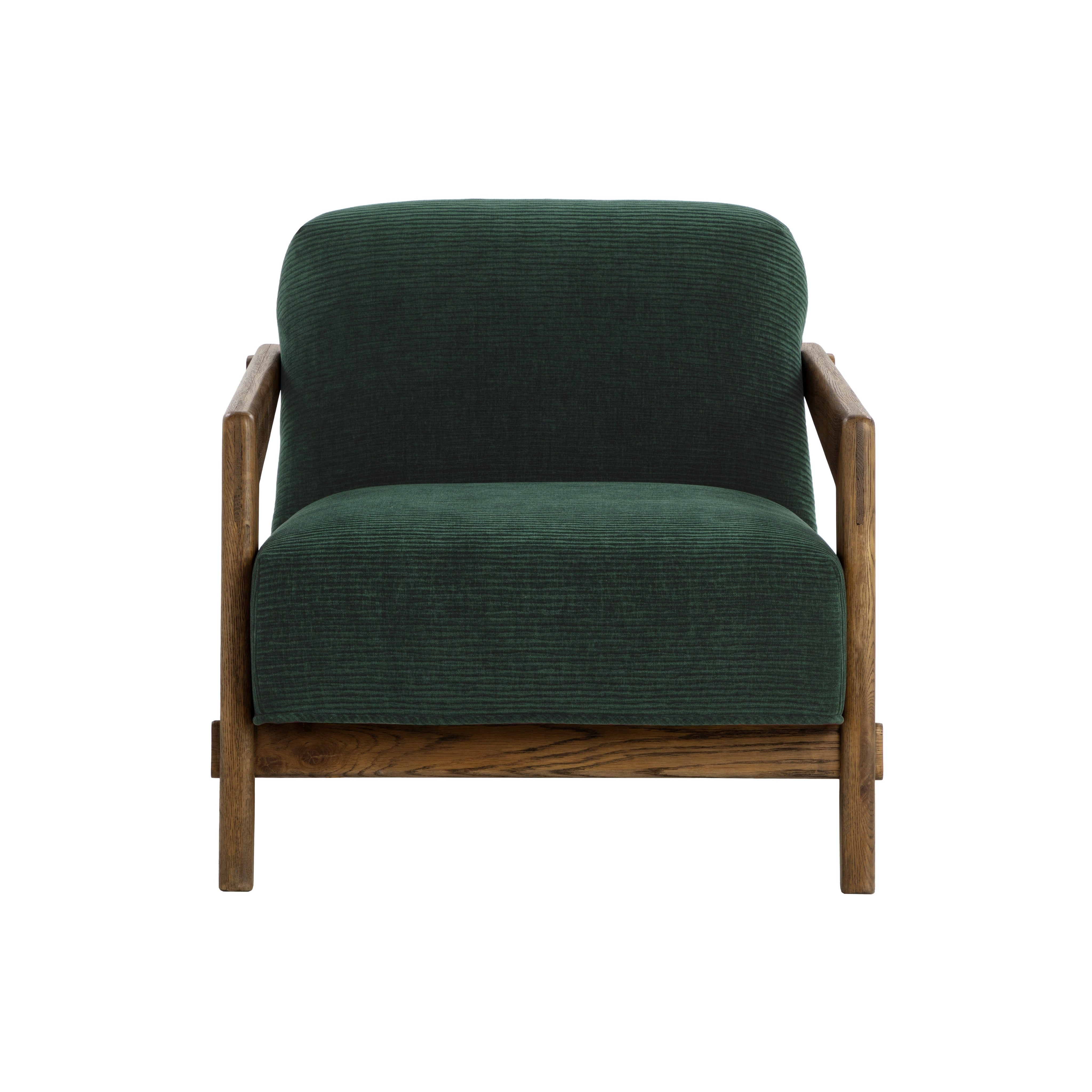 The Bosco Lounge Chair, with its sharp and subtle design, is a mid-century marvel. The warm brown oak wood frame is streamlined for relaxed, surprisingly soft seating thanks to plush cushioning upholstered in richly textured opera nori fabric.