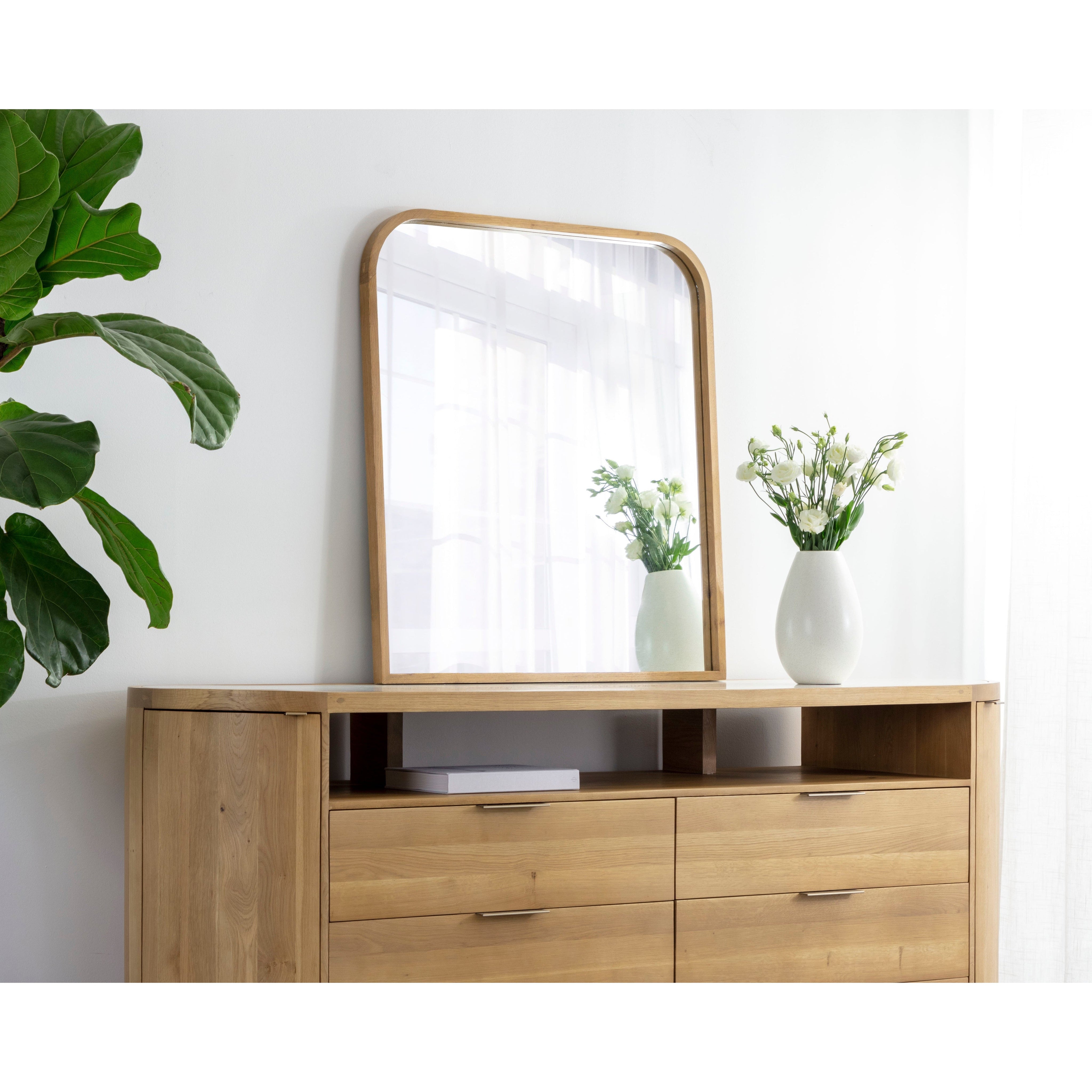 Complete a modern loft with this sleek, minimalist wall mirror. Features a rustic oak wooden frame. Mounting and anti-tip kit included. As wood is an organic, porous material, these pieces will contain natural variation of texture and may also exhibit fine indentations and cracks. Wood pieces will also display a disparity of colour and grain, and visible knots and burls that add to the character of each piece. Made in India. With refined craftsmanship, this design was brought to life by skilled local artisans. By nature, these materials develop unique imperfections such as fissures, markings and colour variations for a truly one-of-a-kind piece.