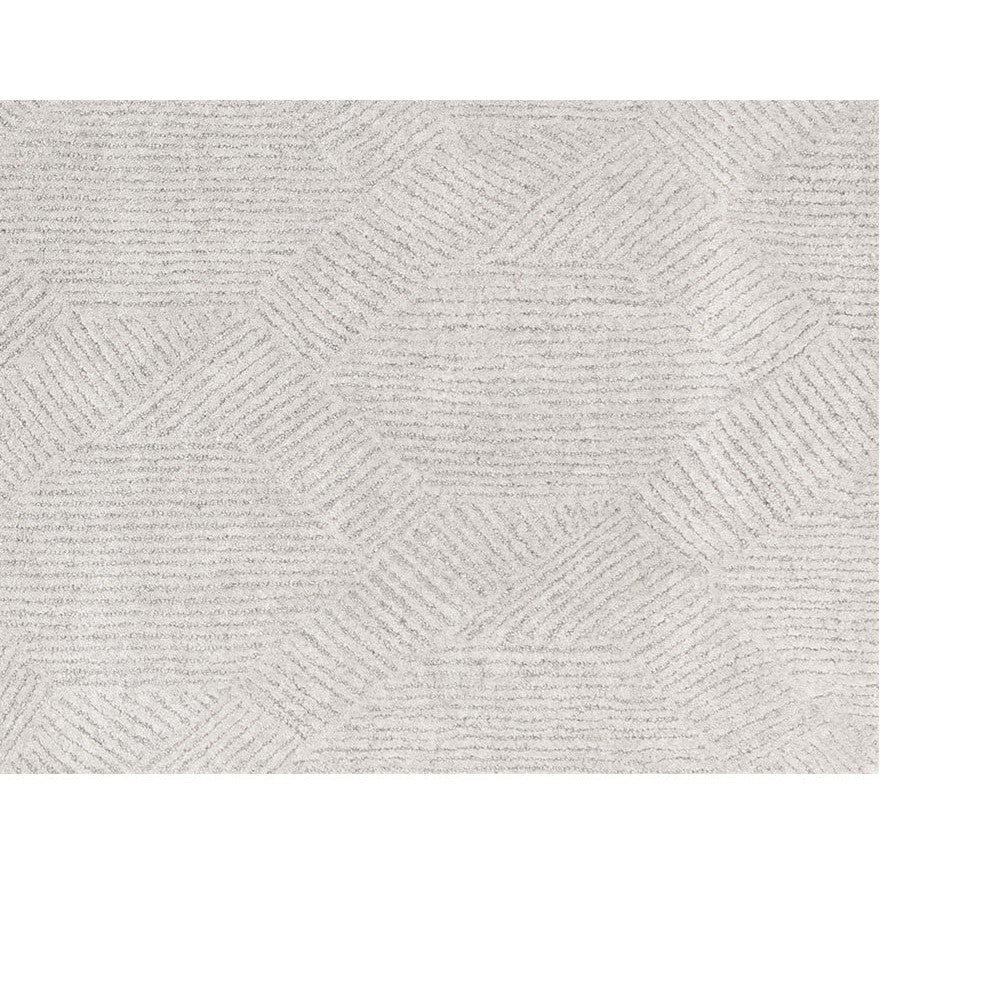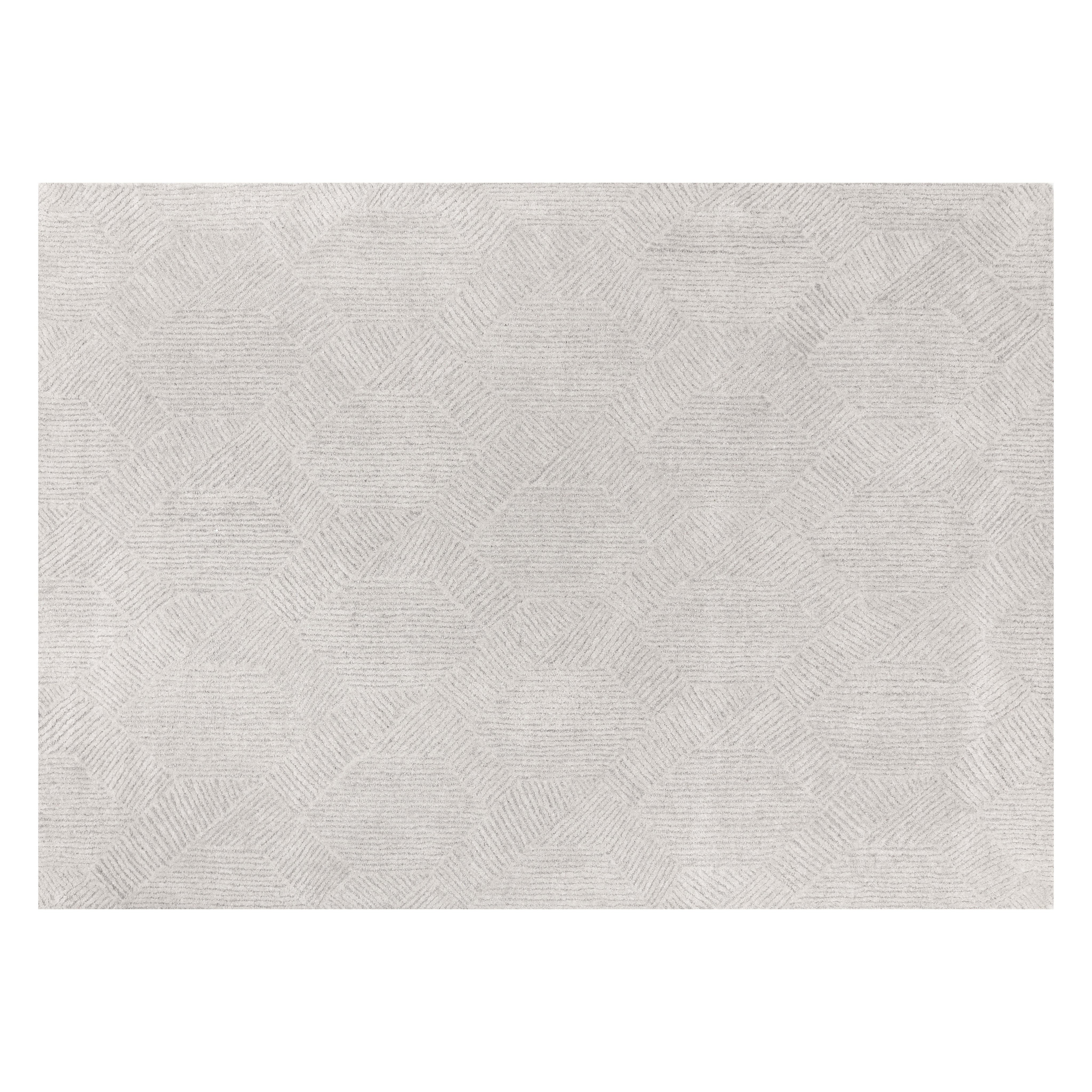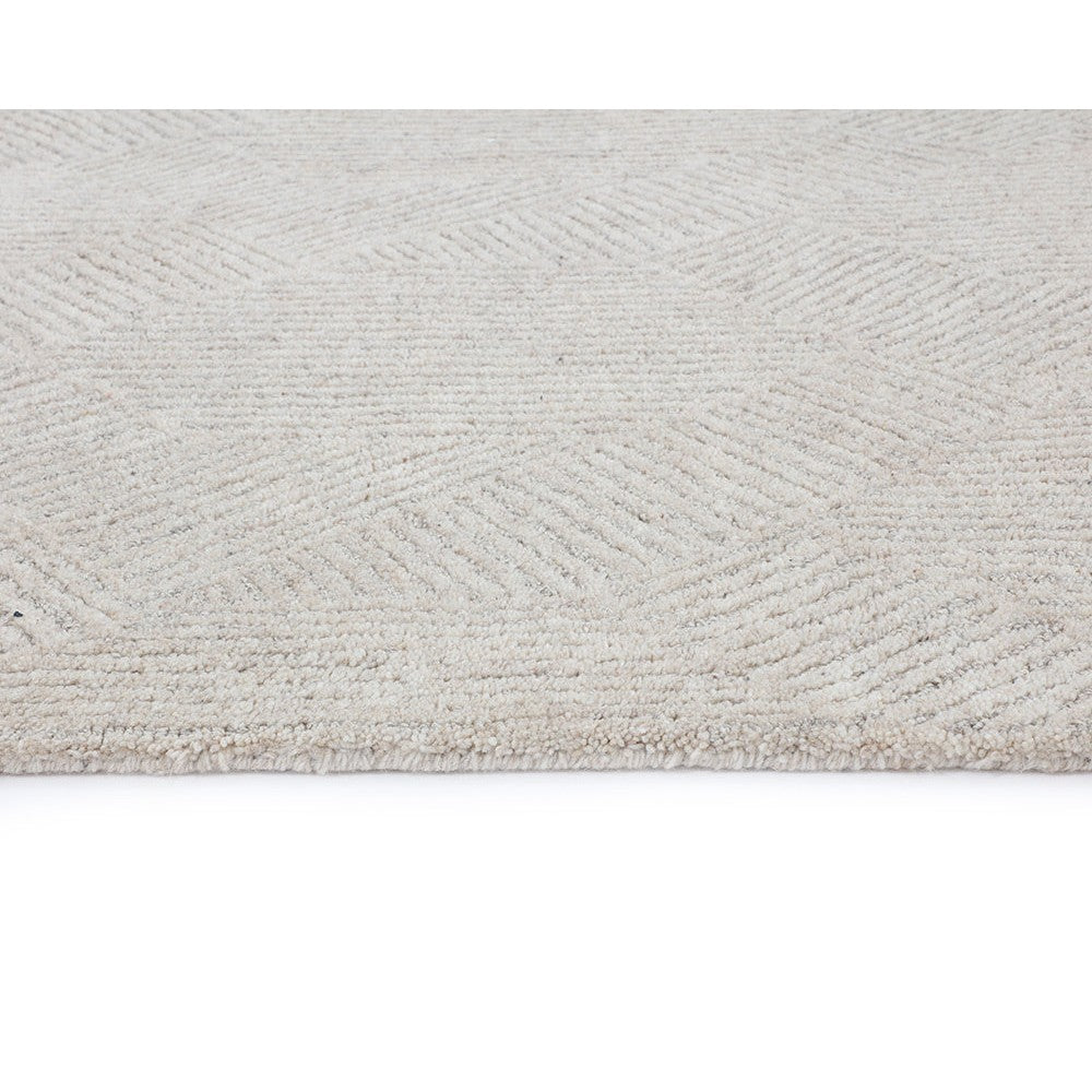 Complete modern and contemporary spaces with this hand-tufted rug. Features a subtle geometric pattern in an oatmeal/grey wool-viscose blend. Available in four sizes. Variations in colour, design and size are to be expected and embraced in each rug due to the distinctive weaving process followed by each artisan, resulting in a truly one-of-a-kind piece. Shedding is inherent to wool rugs and will subside over time with regular vacuuming.