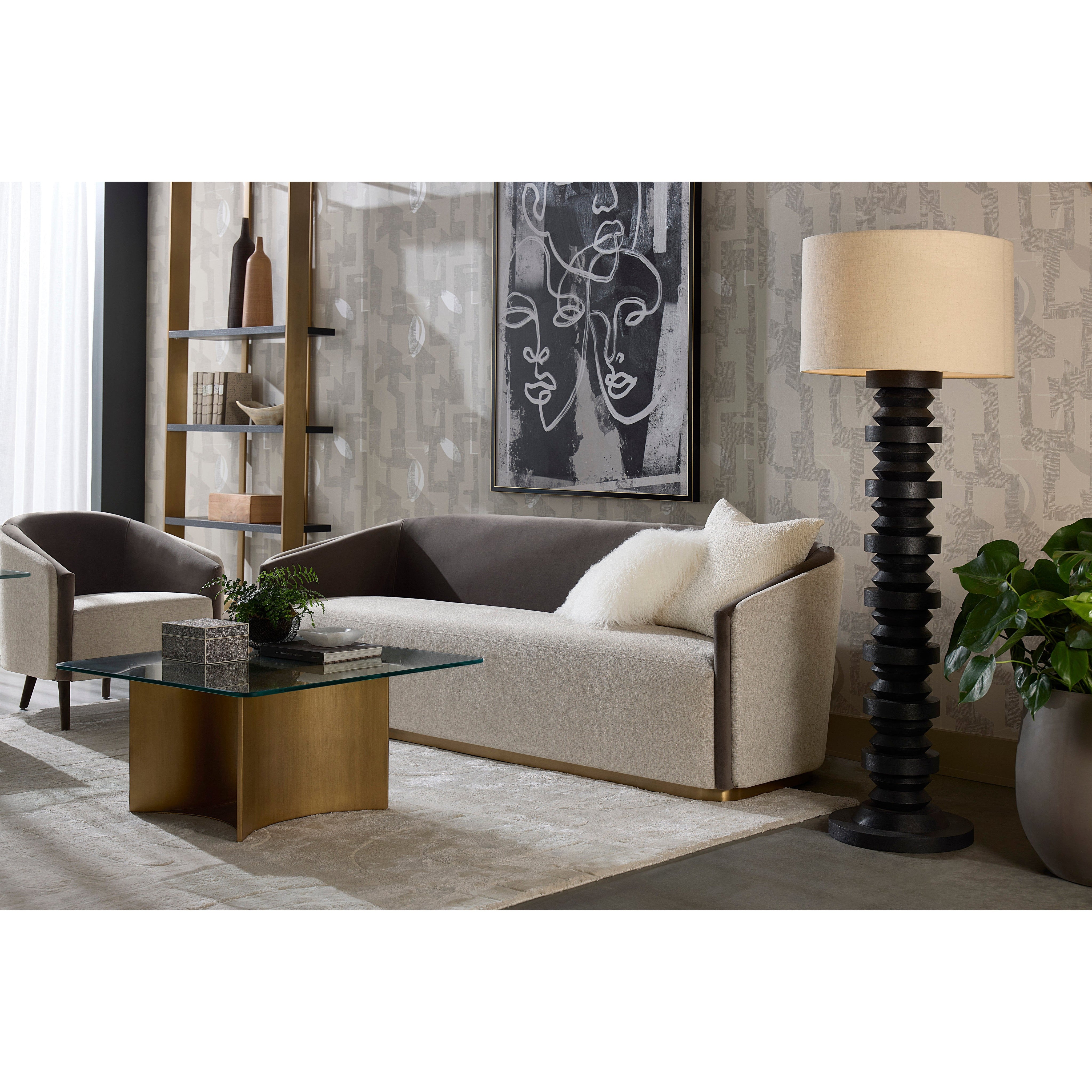 The Caplo Floor Lamp captures attention with its strong presence. Its sturdy black mango wood base features undulating shapes that infuse the design with distinctive character.