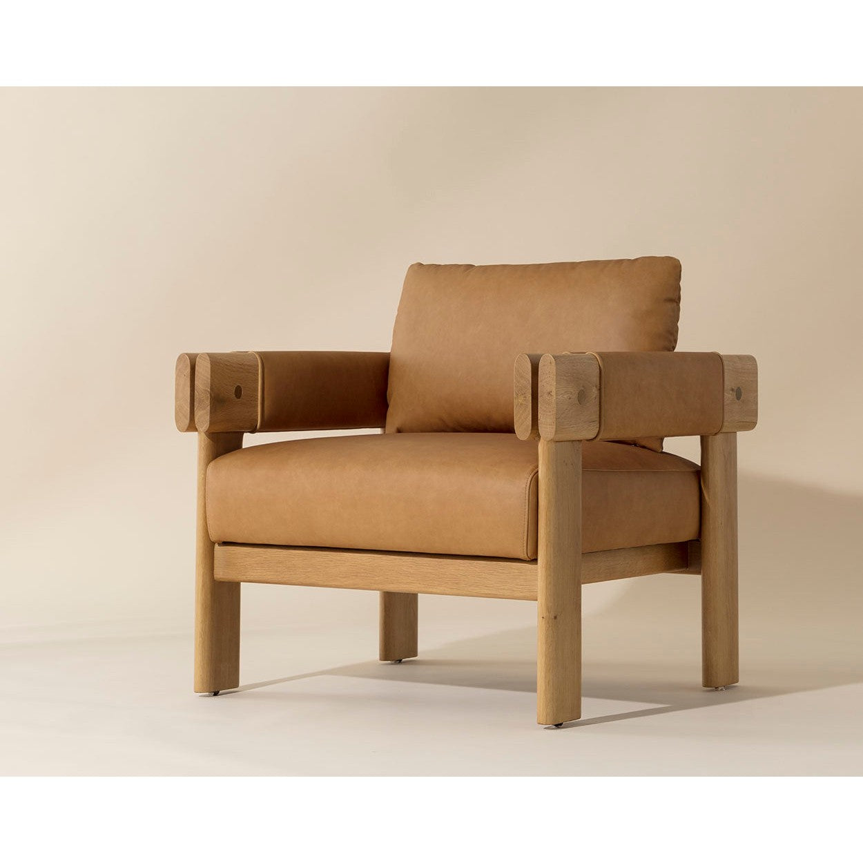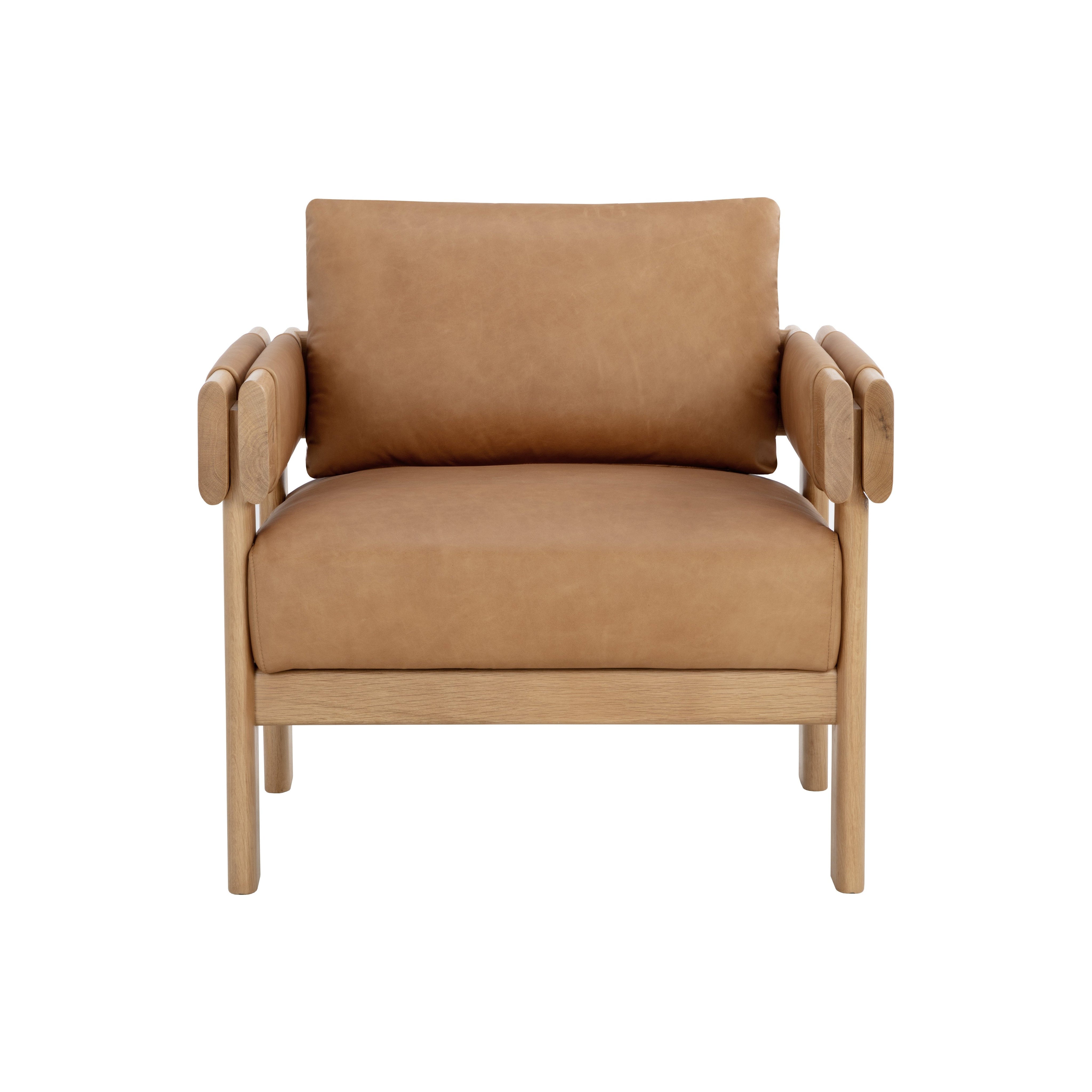 Crafted from natural materials, the Carmichael Lounge Chair adds an inviting atmosphere to any room. The beautiful characteristics of rustic oak wood and ludlow sesame leather are emphasized through the chair's double armrest design. As wood is an organic, porous material, these pieces will contain natural variation of texture and may also exhibit fine indentations and cracks. Wood pieces will also display a disparity of colour and grain, and visible knots and burls that add to the character of each piece. Handle with Care: This design has been crafted with 100% leather. Leather is a natural material; as such, colour variations, markings, wrinkles, grooves and light scratches are acceptable and appreciated characteristics. No two pieces are alike. Visit our Product Care page for more information on how to ensure the lasting beauty of this piece.