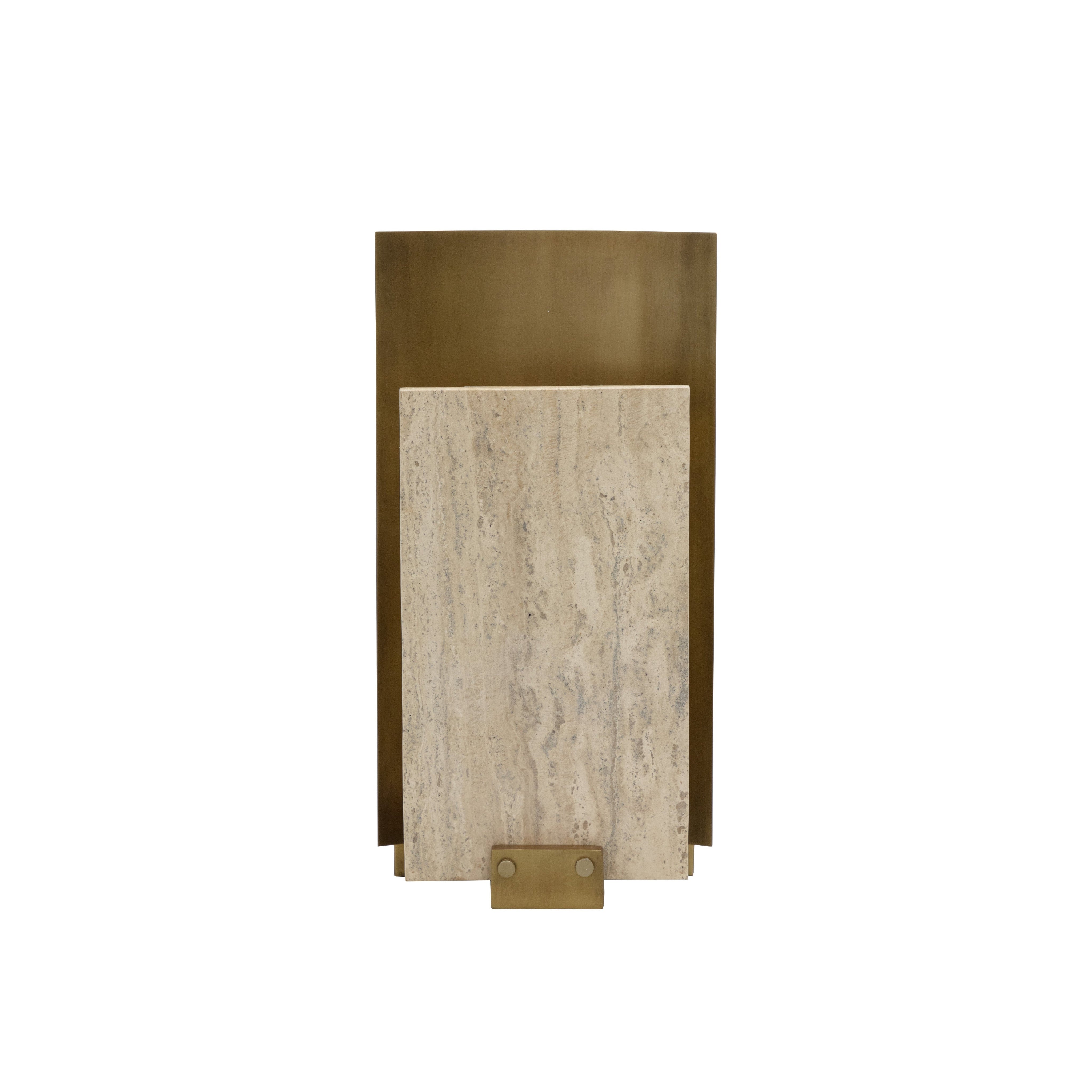 The Ciana Sconce embraces modern sophistication by bringing natural travertine and antique brass iron together. Using only a single bulb, the warm tones of travertine shine through to cast a stunning glow.