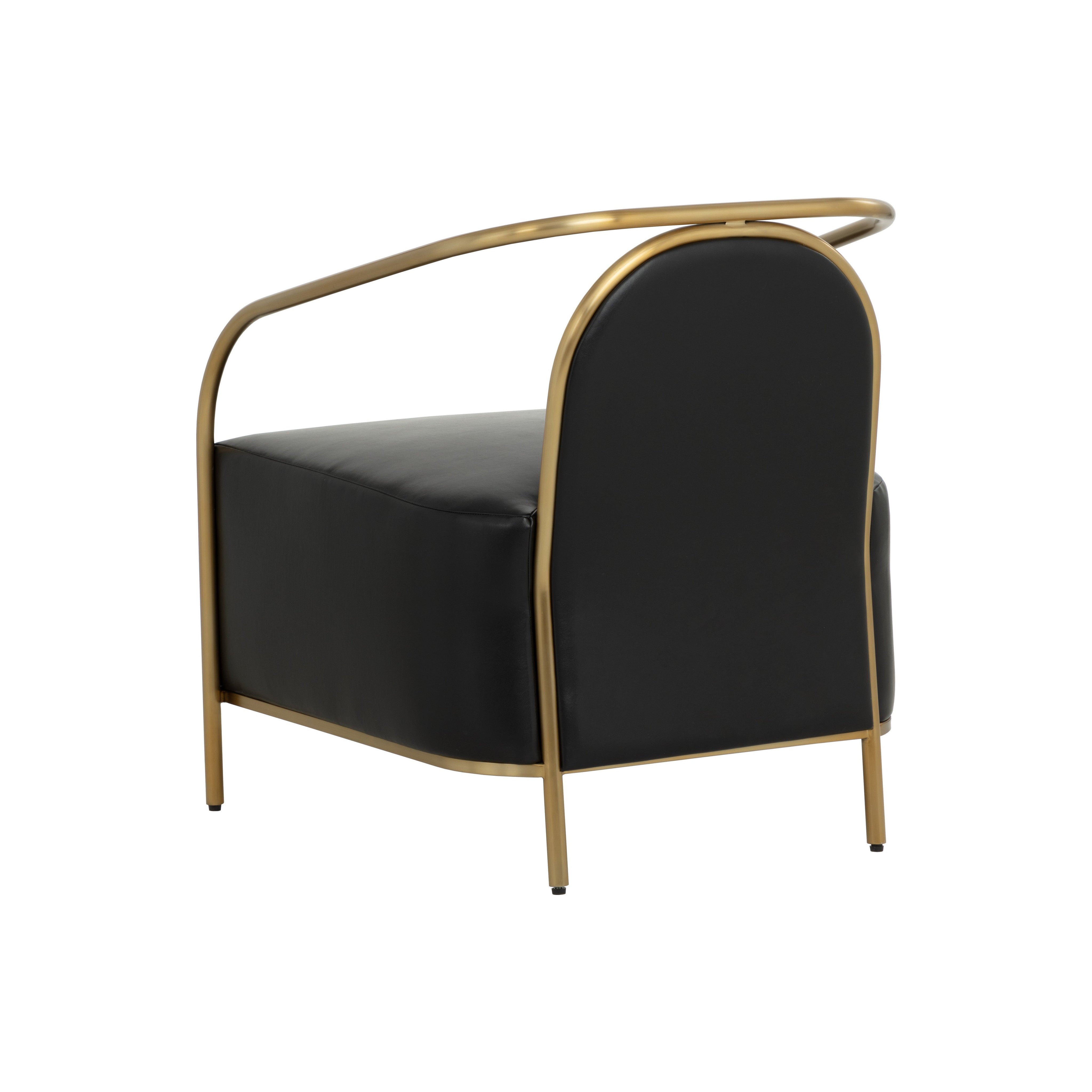The Cicero Dining Armchair is a lesson in understated elegance. Sleek gold stainless steel paired with the rich black tones of catina black bonded leather creates a captivating look to elevate any dining space.