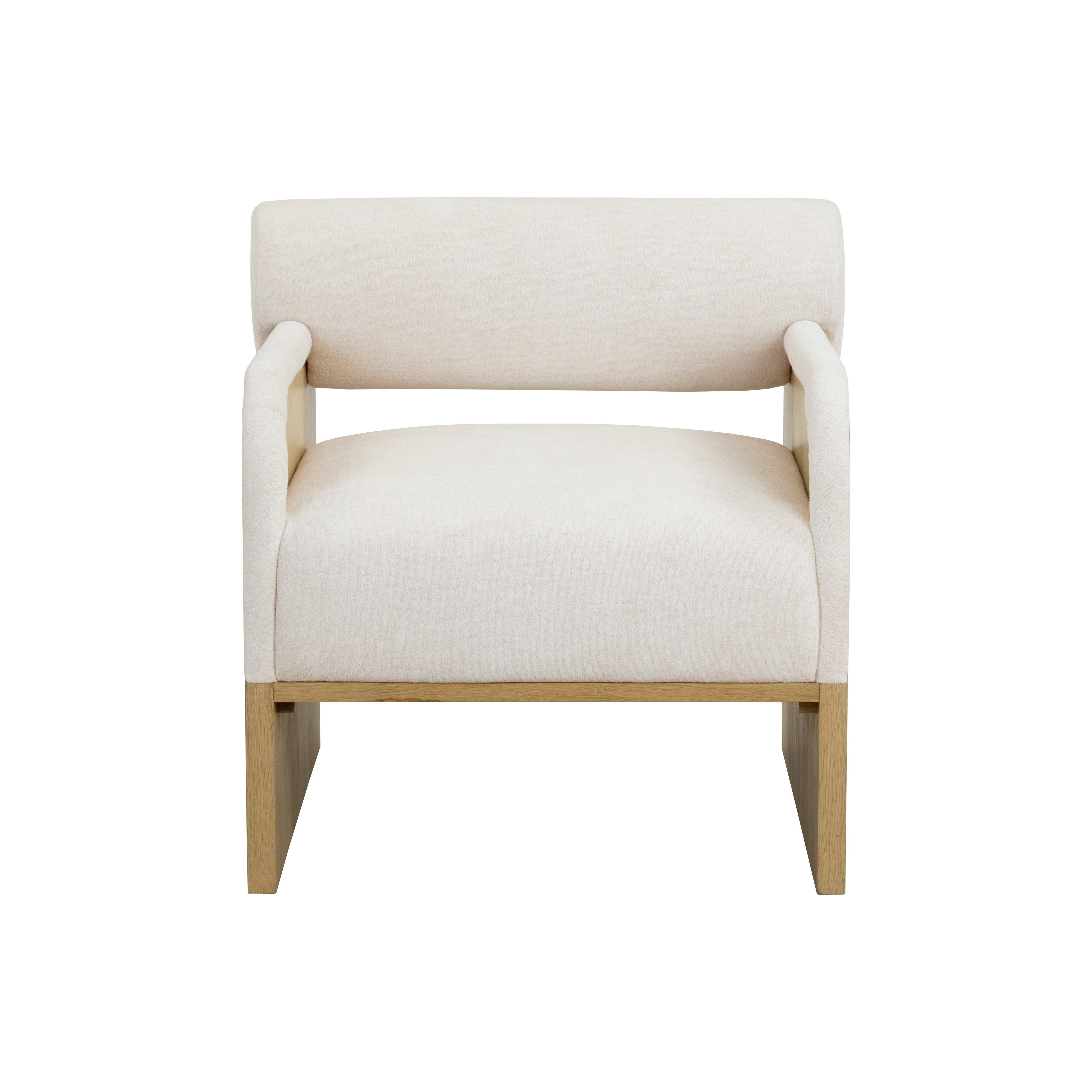 The Coburn Lounge Chair is a fresh take on contemporary comfort. A bolster back and deep seat upholstered in our soft eclipse white fabric make this piece an inviting addition to any space. Matching fabric trim on the rounded arms adds extra charm to the overall look. Completed with a rustic oak wood veneer legs carefully selected for its distinctive wood graining. As wood is an organic, porous material, these pieces will contain natural variation of texture and may also exhibit fine indentations and cracks. Wood pieces will also display a disparity of colour and grain, and visible knots and burls that add to the character of each piece.