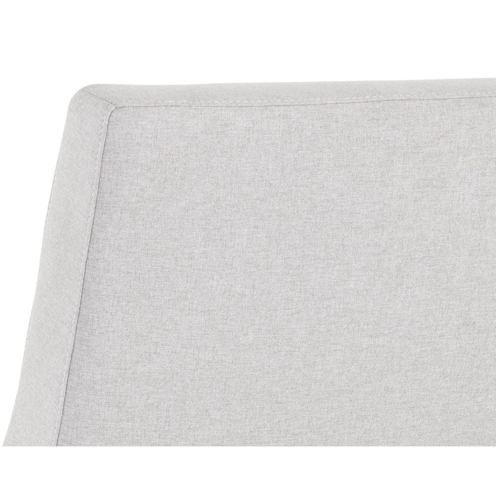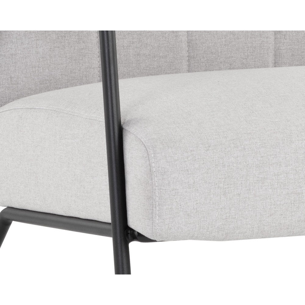 Inspired by mid-century modern design, this lounge chair is full of comfort and style. Upholstered in light grey fabric with vertical tufting on the seat interior. Completed with a black powder coated steel base. Also available in bounce nut and stone faux leathers.