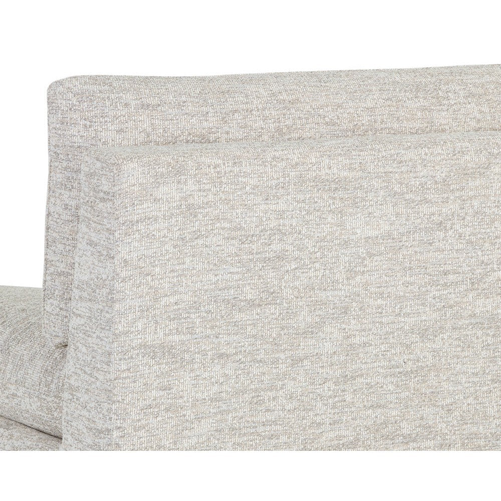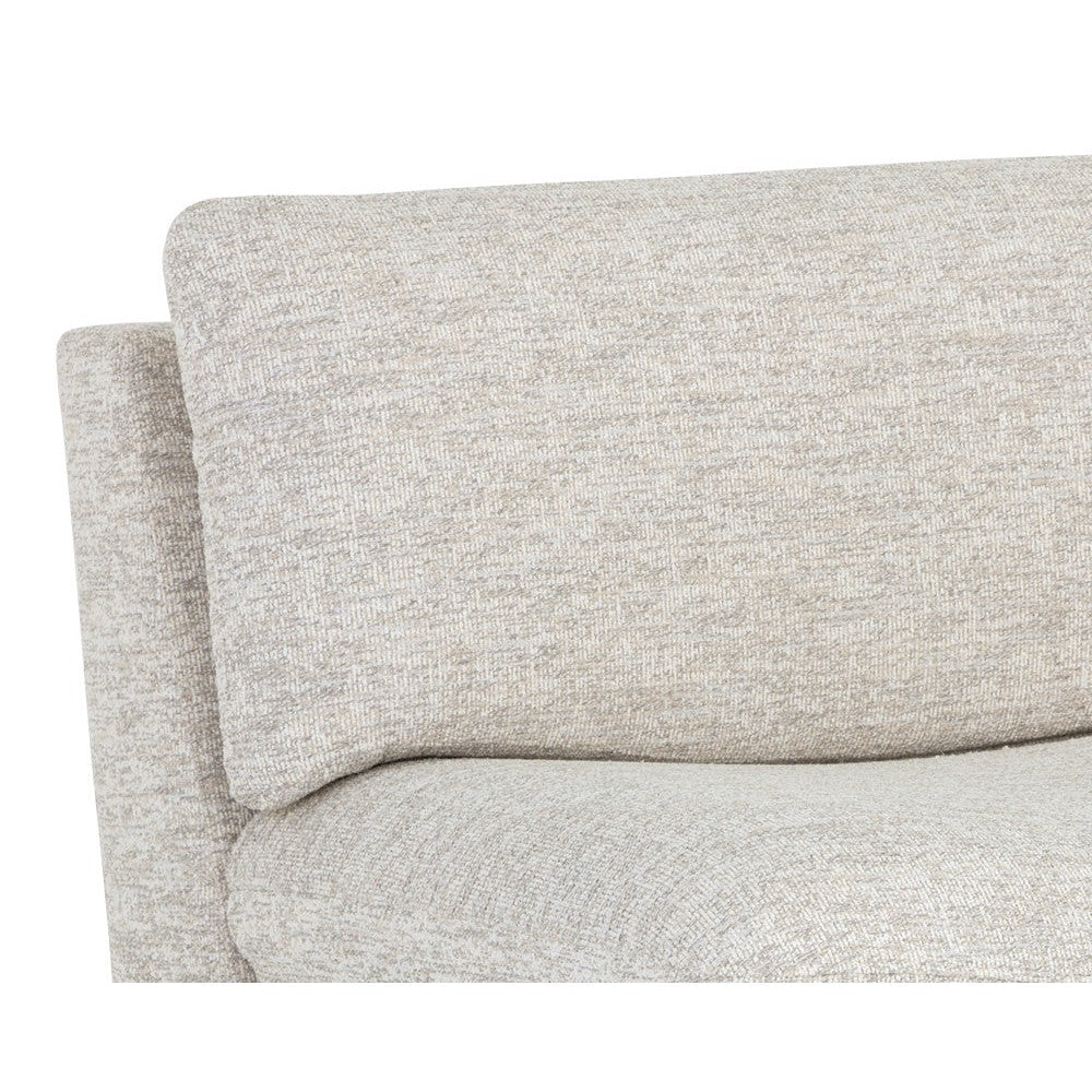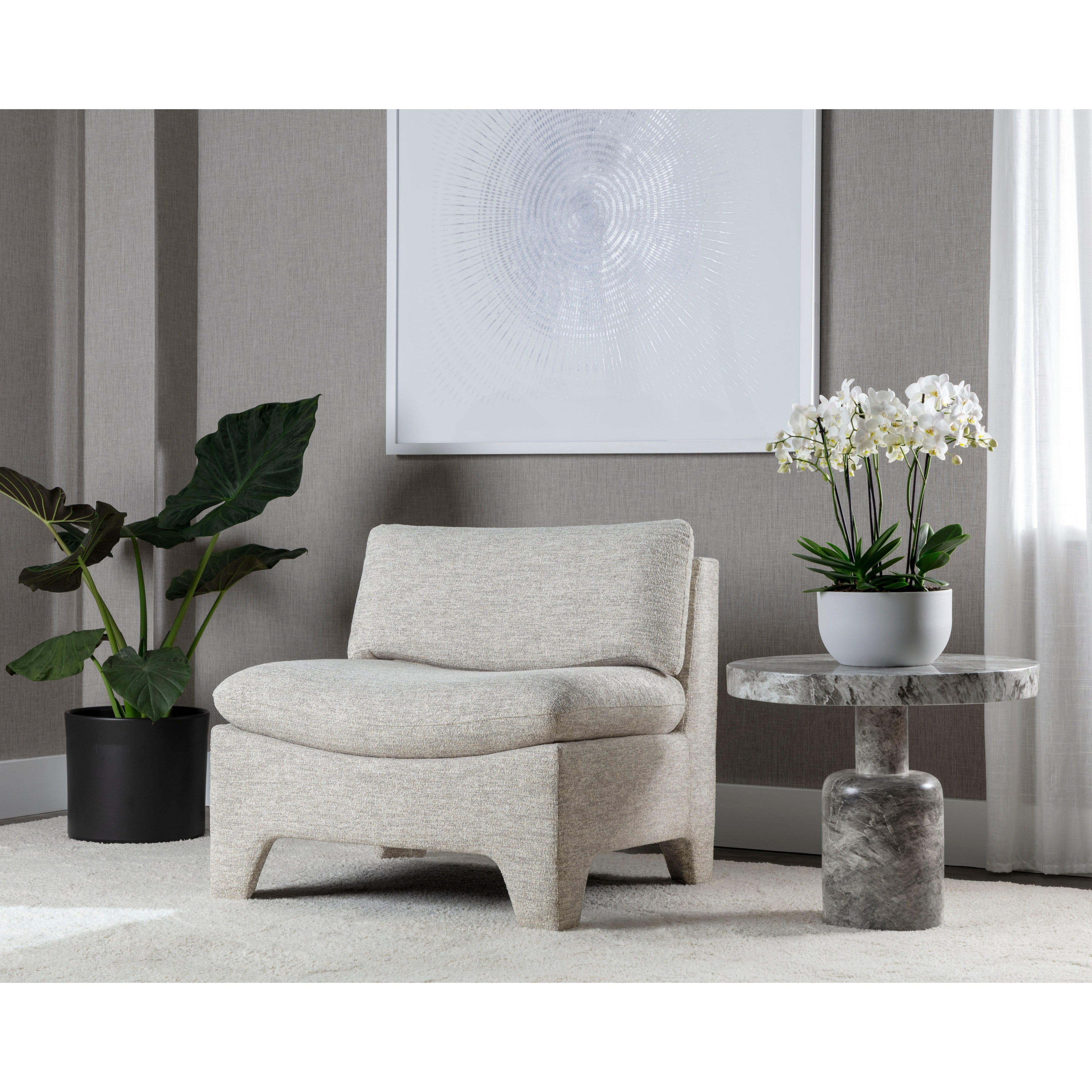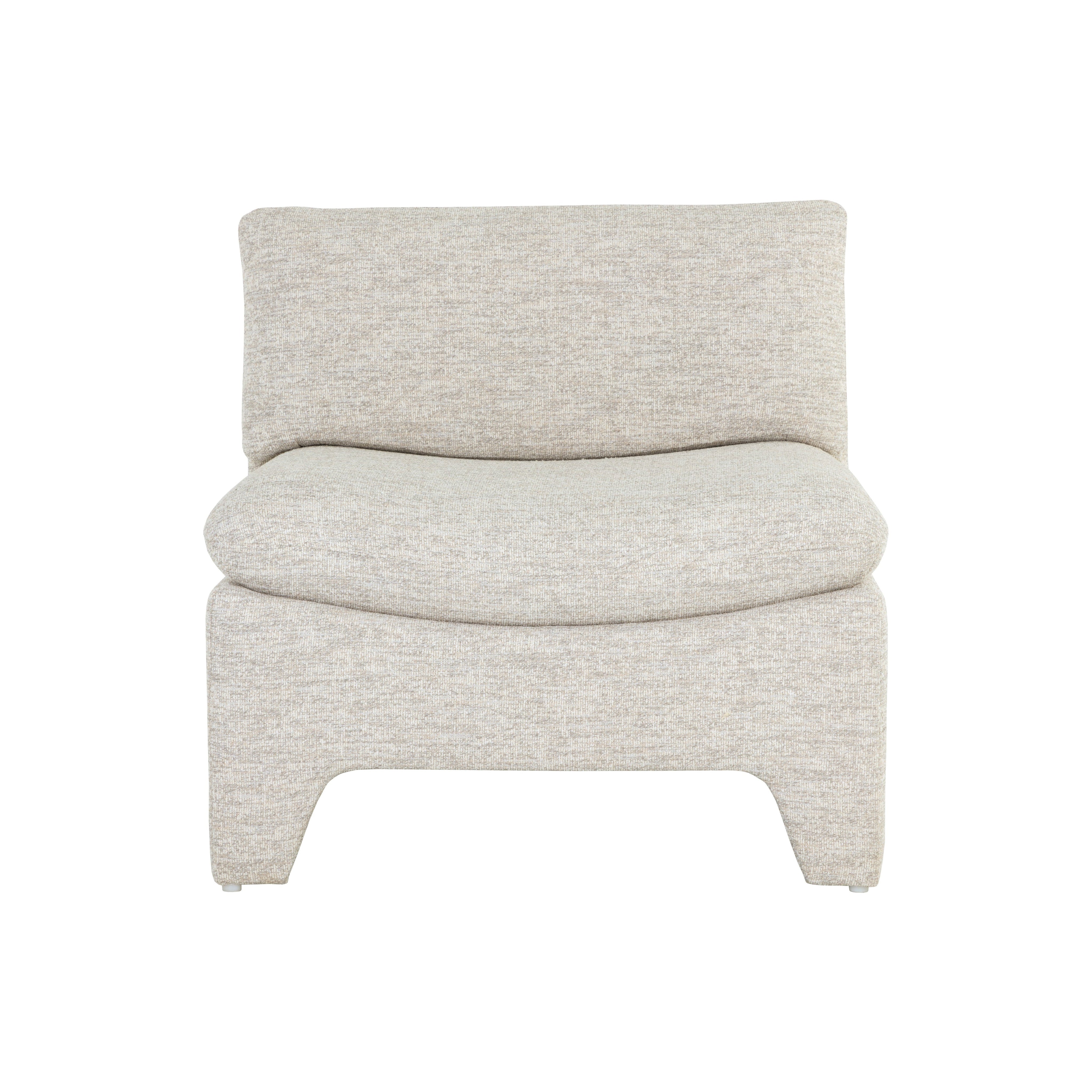 Designed to strike intrigue, this contemporary lounge chair features an eye-catching shape that will command attention. Stocked in boho oatmeal and sesame fabrics, and completed with fully upholstered legs.