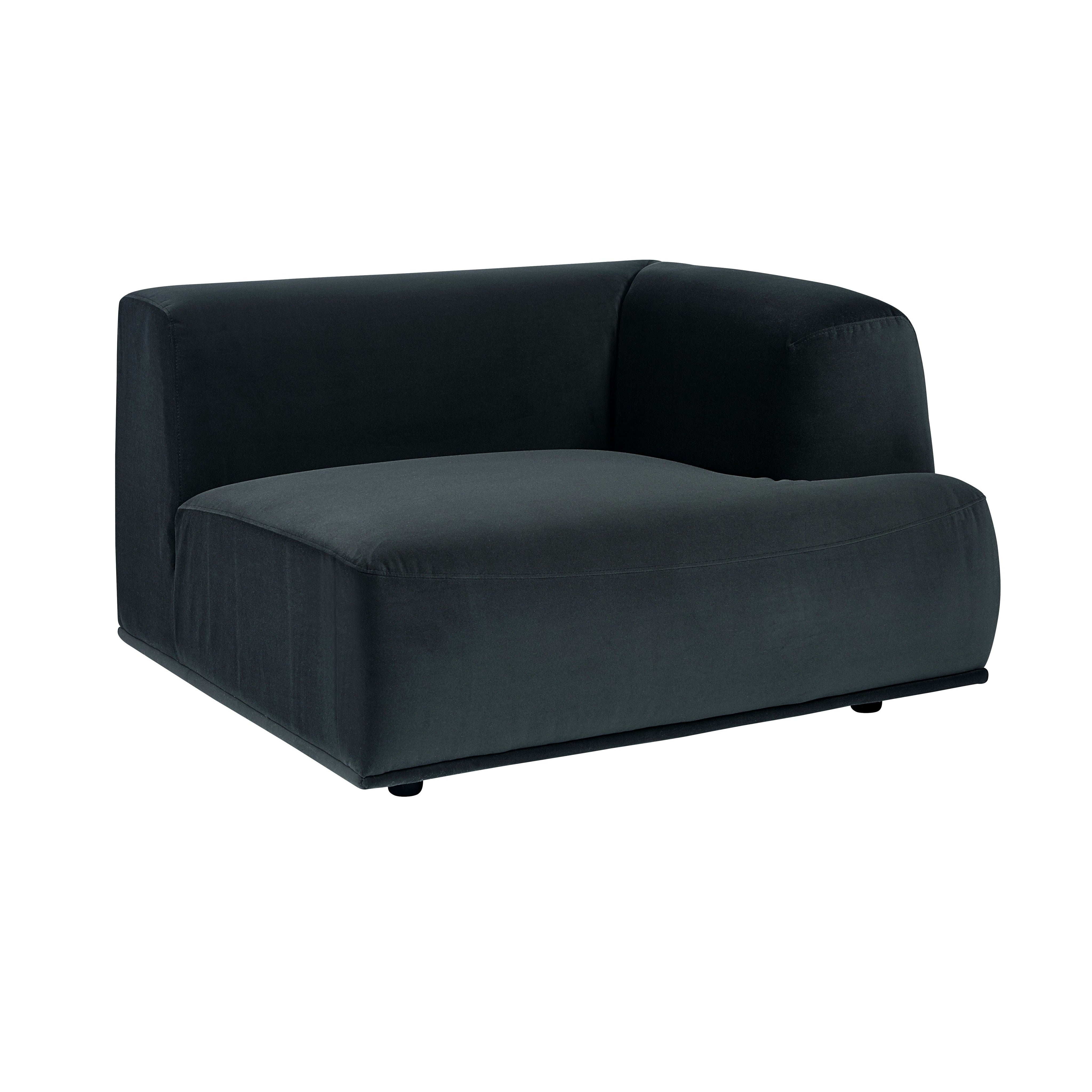 A modern right arm chair that was designed to allow for creativity. Available in smokescreen fabric, and features a storage pocket on the side. This piece can be sourced in a variety of combinations with the coordinating Darren corner chair, armless chair and left arm chair pieces. A stylish and comfortable addition to large and small living spaces. Also available as a sectional set. Smokescreen fabric has a dark green undertone.