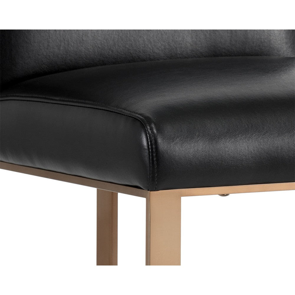 Stunning from all angles, this counter stool features an exposed brushed antique brass steel frame with a footrest. A streamlined seat in cantina white, black and magnetite bonded leather completes the look. Perfect for restaurants, bars and residential spaces. Handle with Care: This design has been crafted with bonded leather. Bonded leather is a blend of reconstituted leather and synthetic materials crafted to reflect the natural characteristics of leather; as such, colour variations, markings, wrinkles, grooves and light scratches are acceptable and appreciated characteristics. No two pieces are alike. Visit our Product Care page for more information on how to ensure the lasting beauty of this piece.