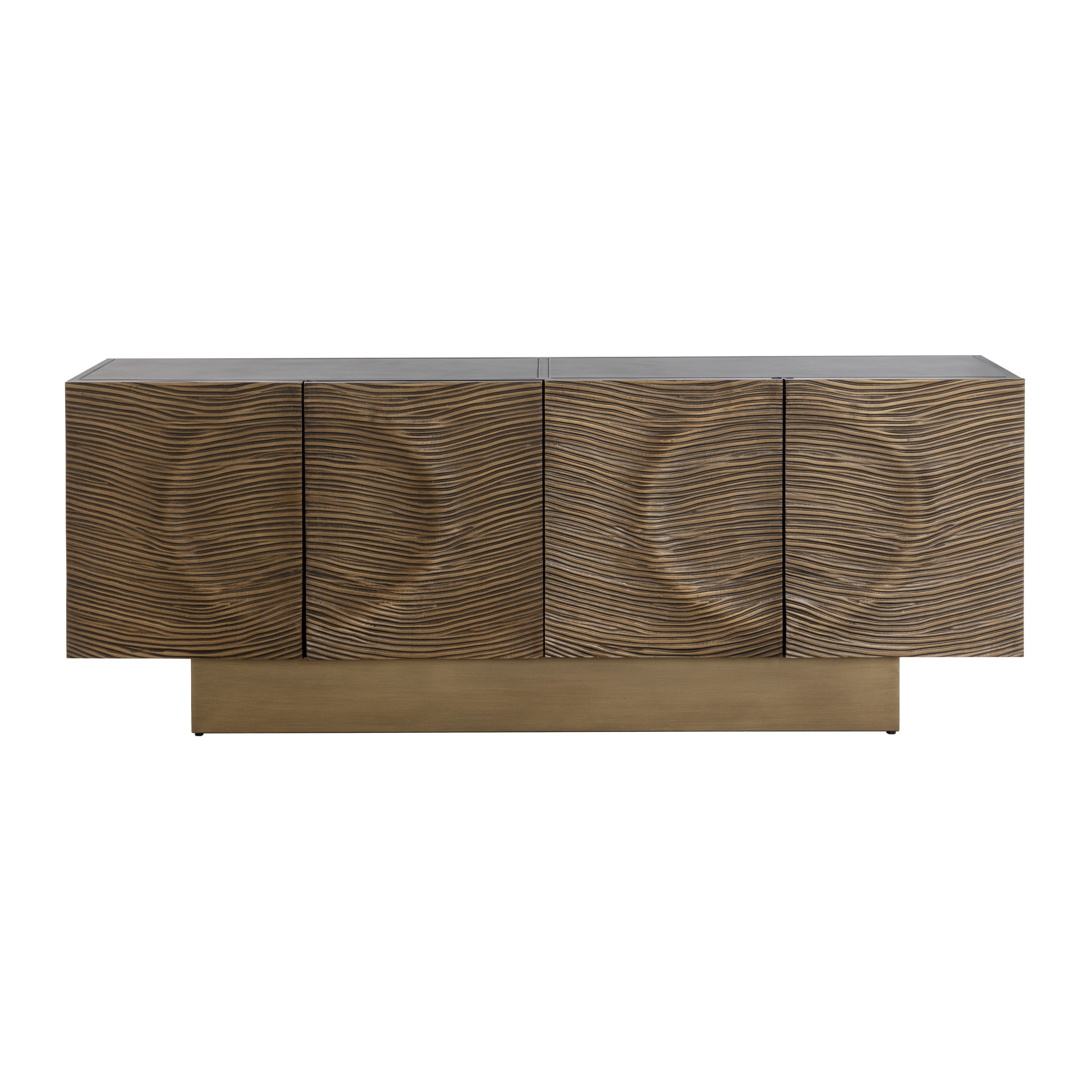 With stunning groves and cutting-edge artisan details, all eyes are on the Dharkan Sideboard. Masterfully crafted from iron with aluminum plated doors, this sideboard is sure to be a piece that visitors talk about for years to come.