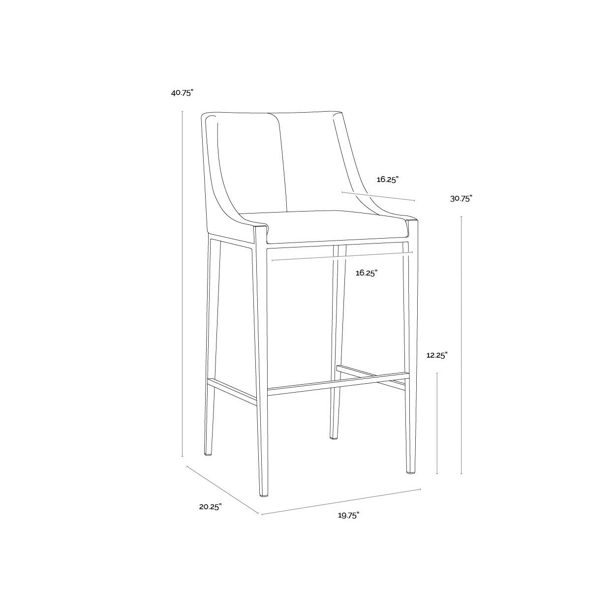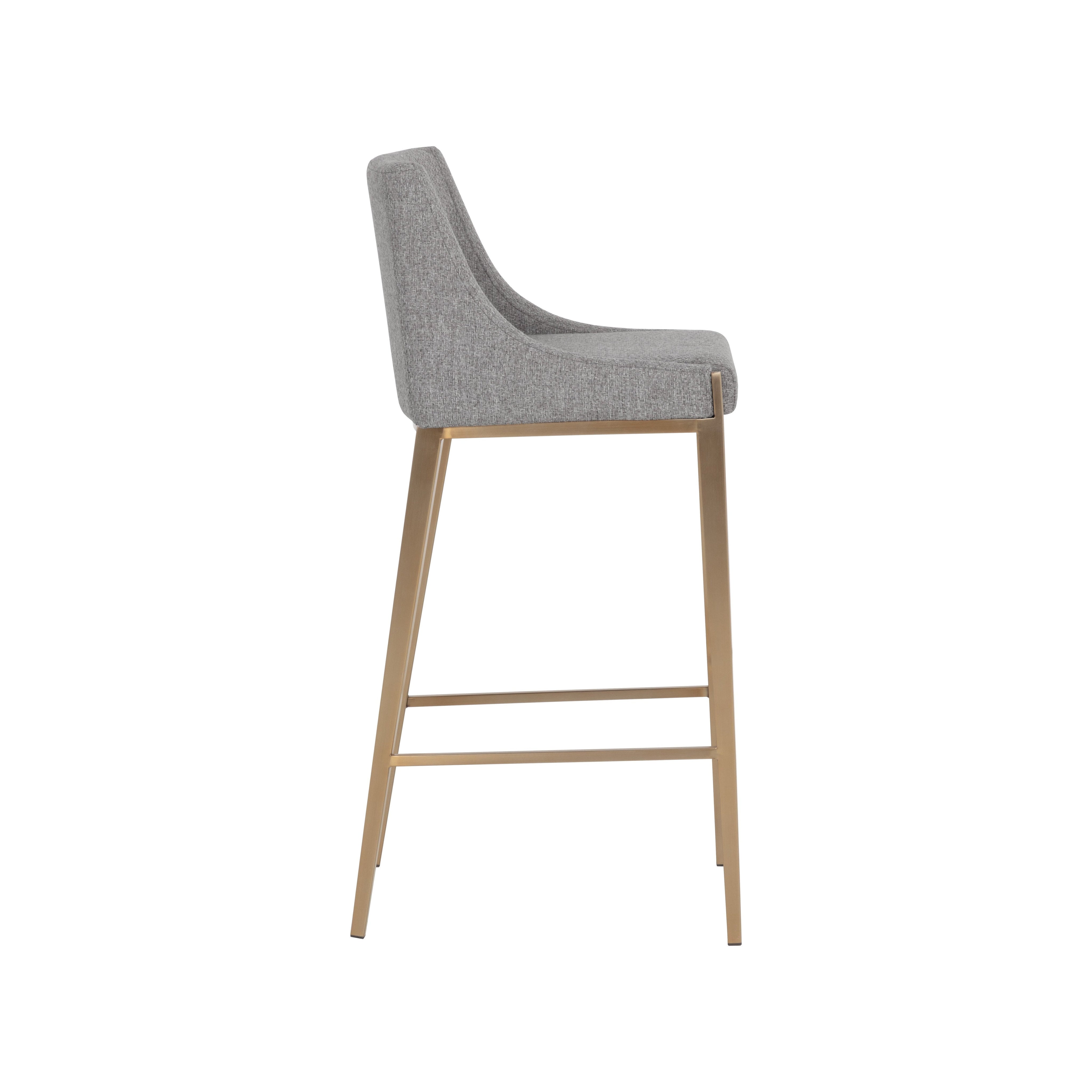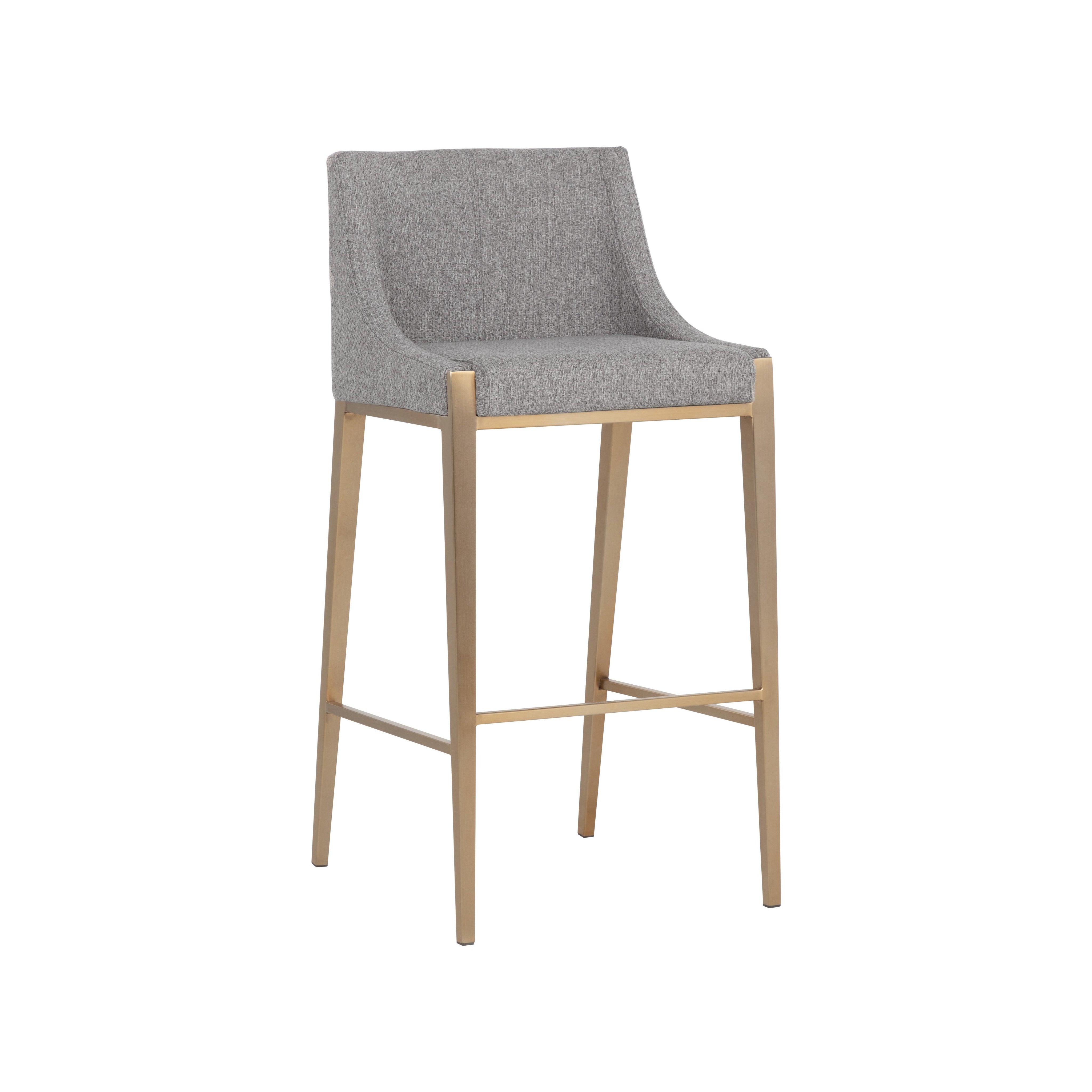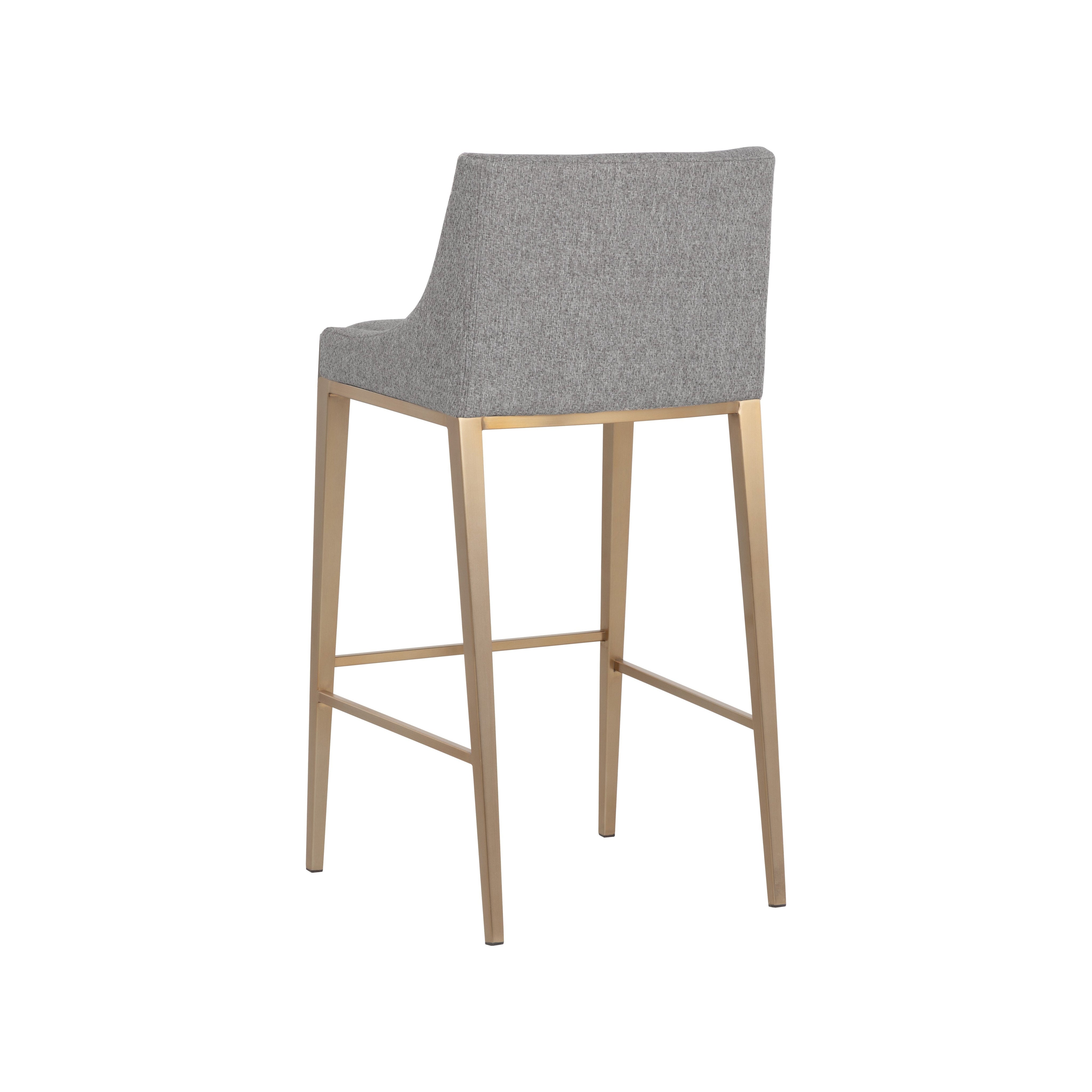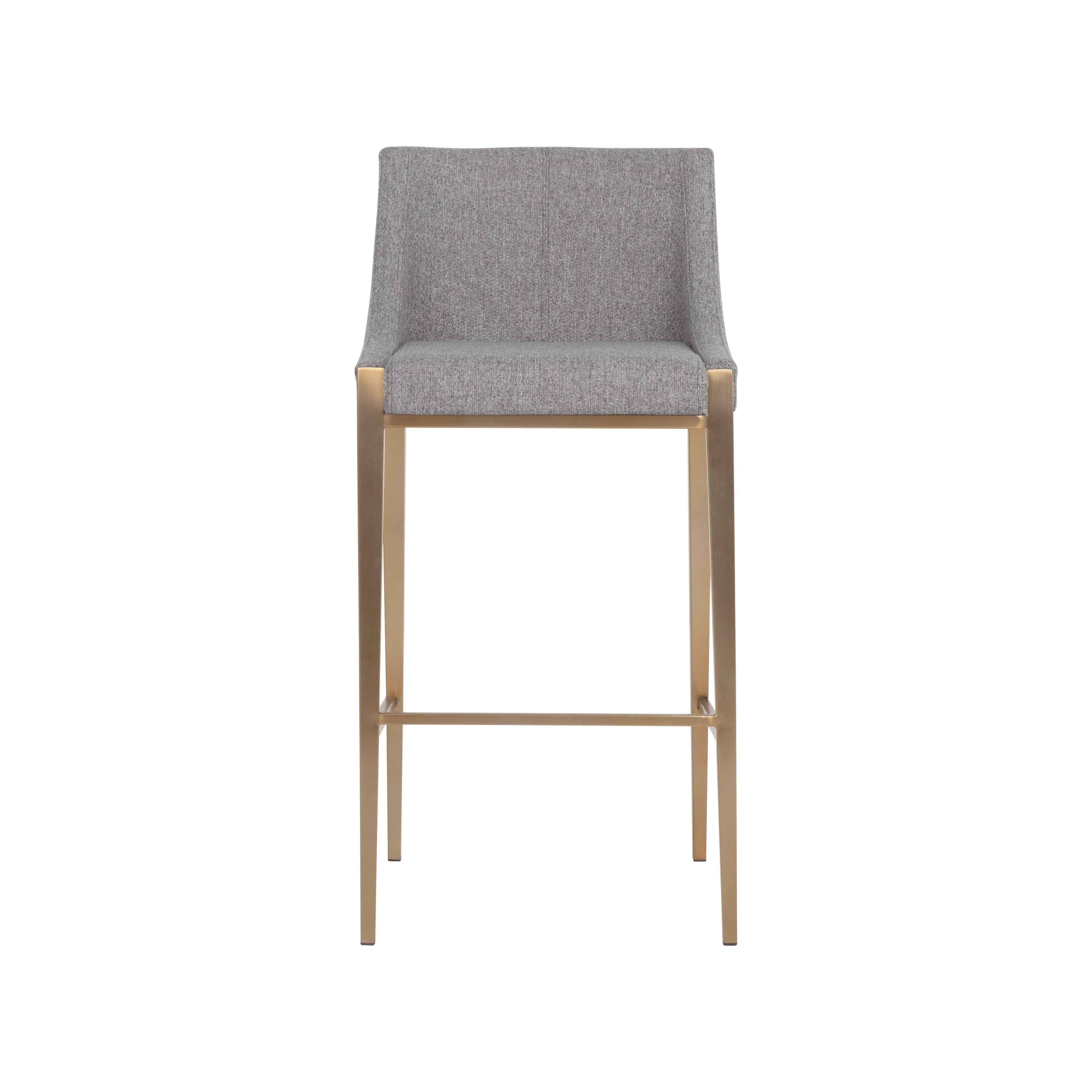 With its clean and modern design, this barstool is a stunning addition to any dining space. Stocked in our textured monument pebble fabric and completed with powder-coated stainless steel legs in an antique brass finish.