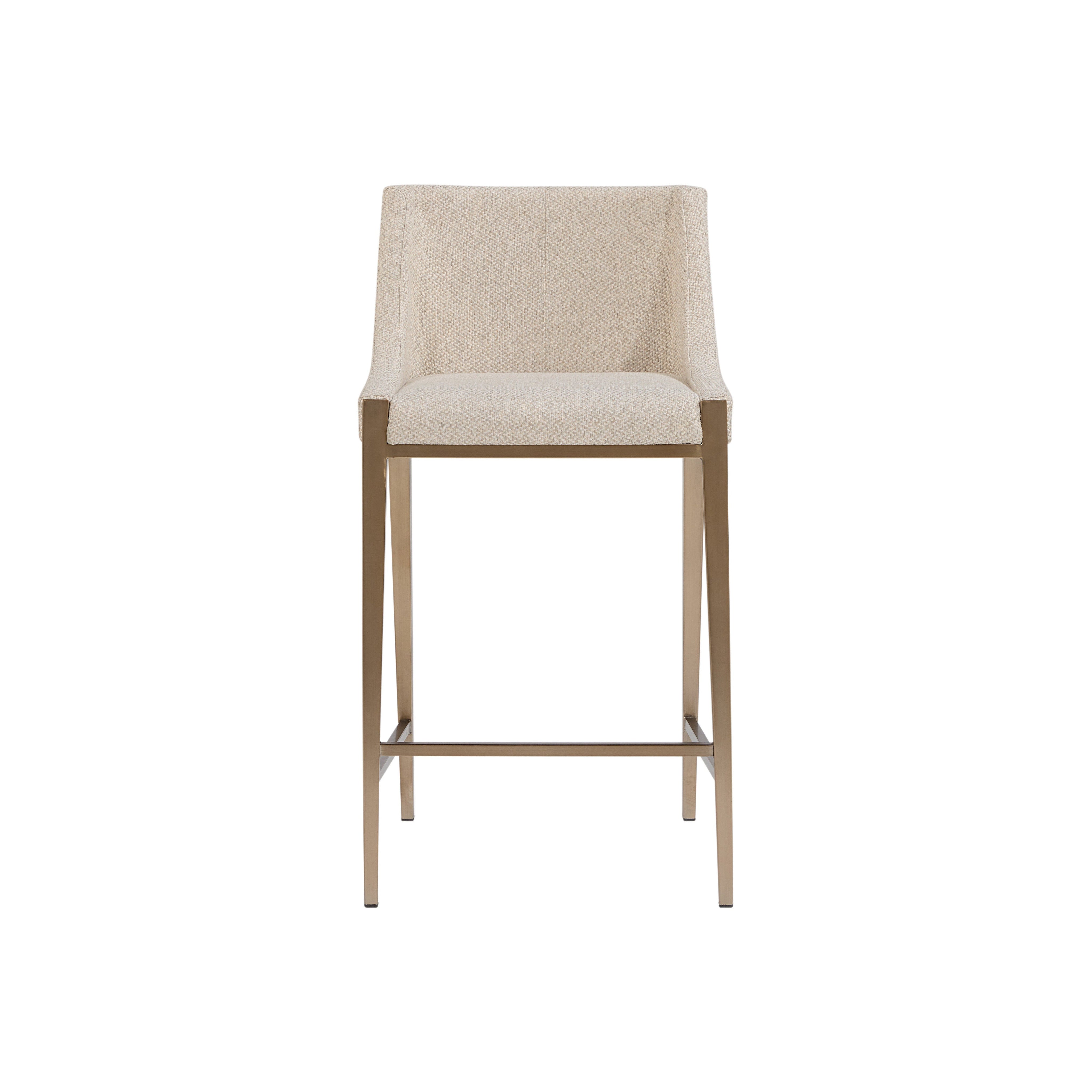 With its clean and modern design, this counter stool is a stunning addition to any dining or kitchen space. Stocked in our textured monument oatmeal fabric and completed with powder-coated stainless steel legs in an antique brass finish.